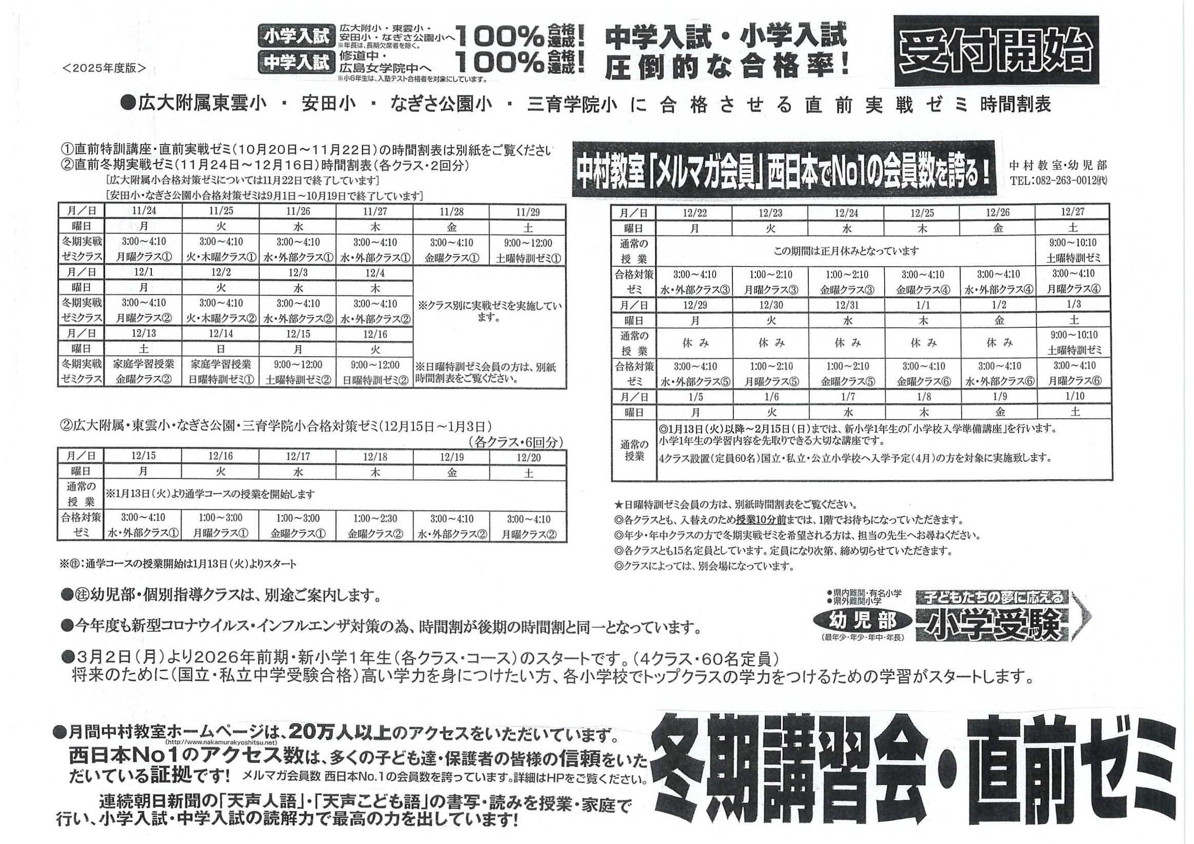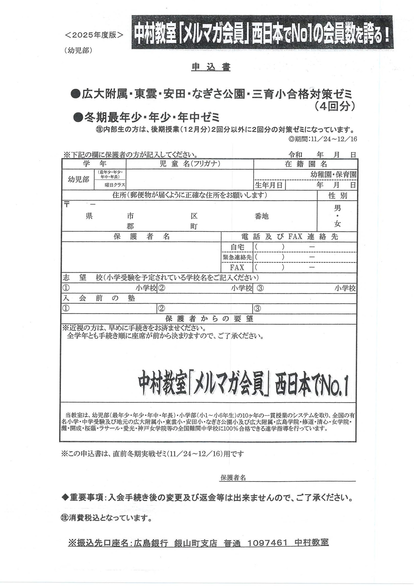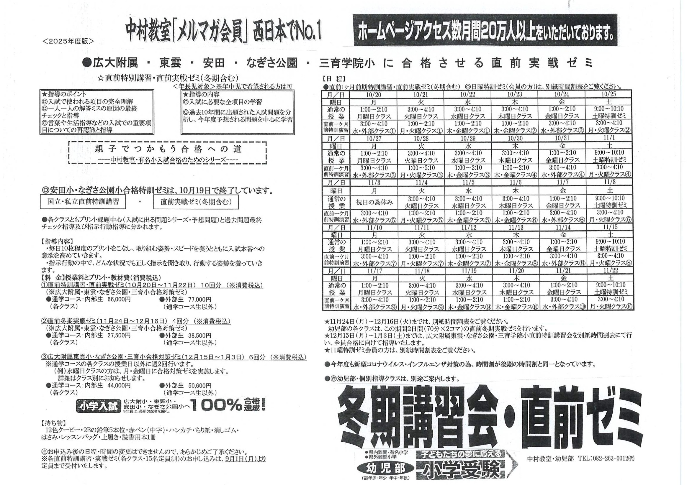 2025年09月14日 ★2025年 【幼児部】◆冬期講習会・直前ゼミのご案内◆