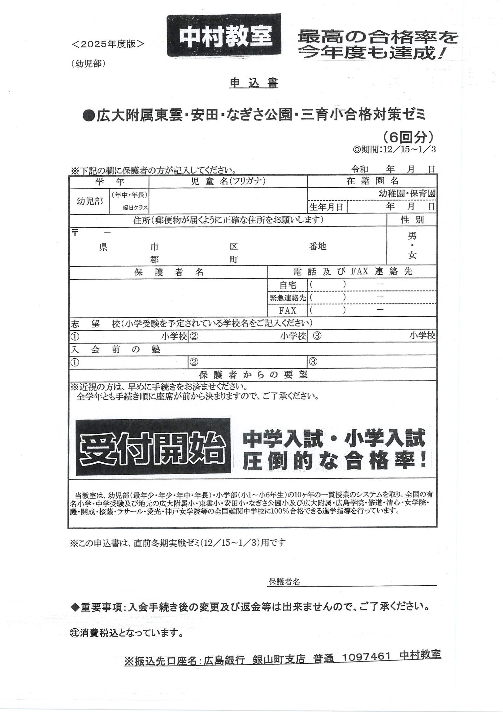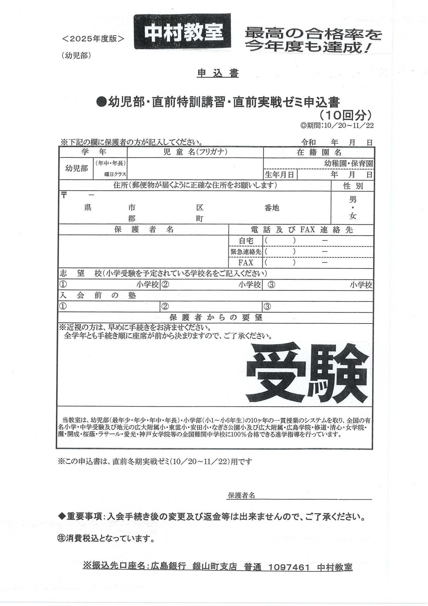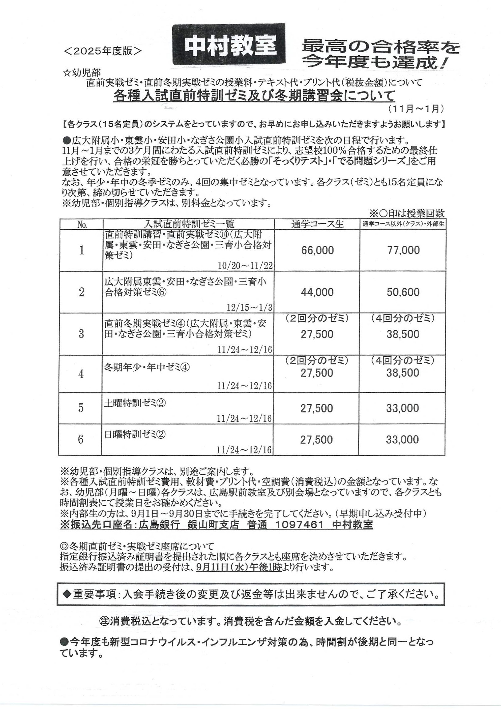 2025年09月14日 ★2025年 【幼児部】◆冬期講習会・直前ゼミのご案内◆