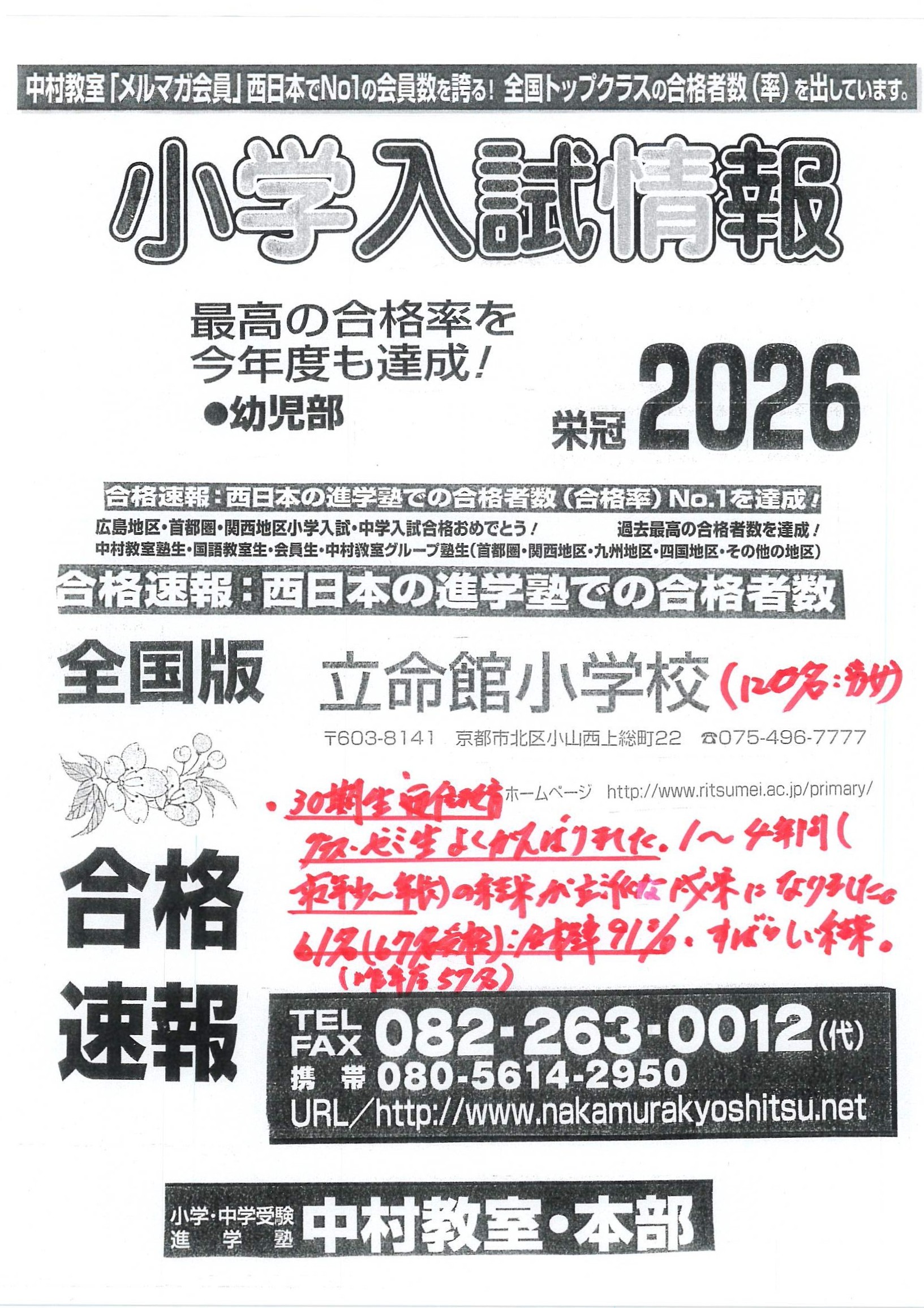 2025年09月11日 ㊗【合格速報】2026年 立命館小 合格おめでとう!