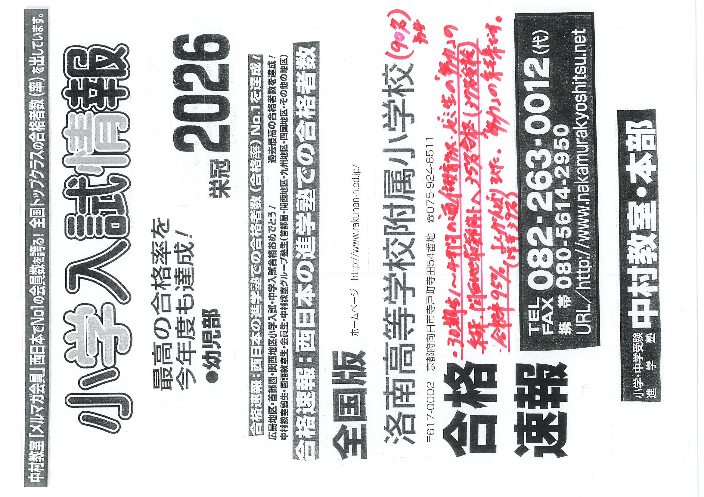 2025年09月20日 ㊗【合格速報】2026年 洛南高校附属小 合格おめでとう!