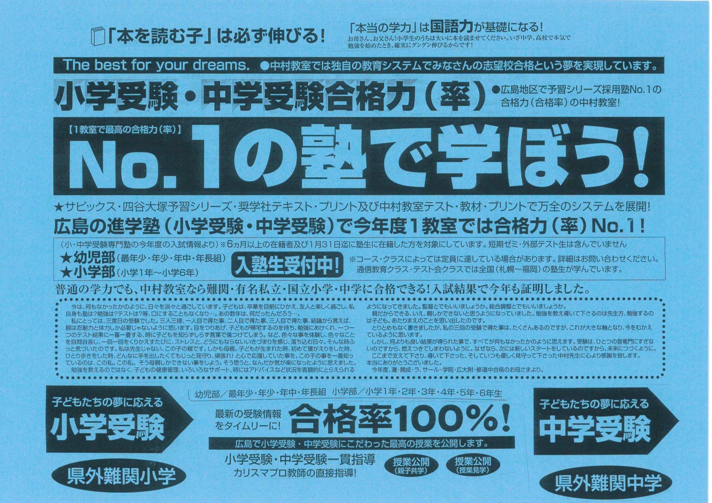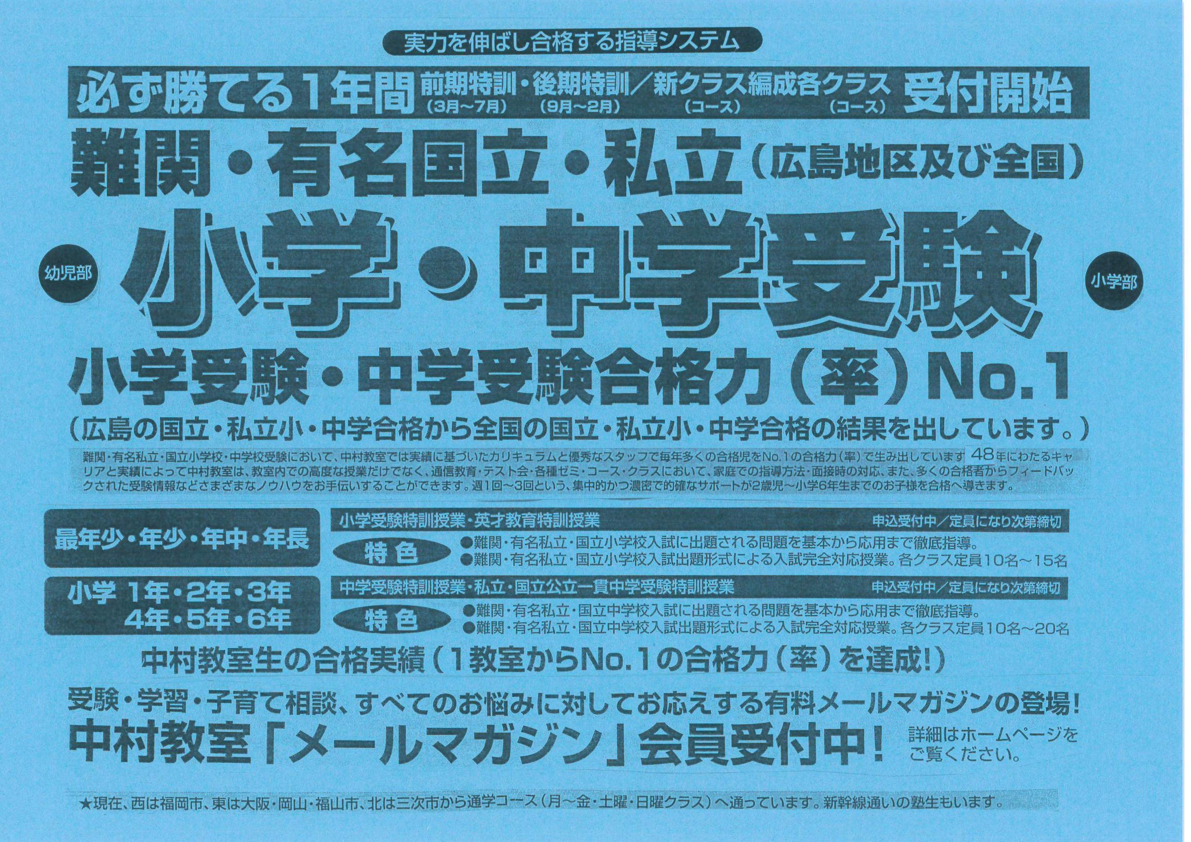 中村教室は全国対応、最高の合格率を今年度も達成。小学・中学受験合格力No1!