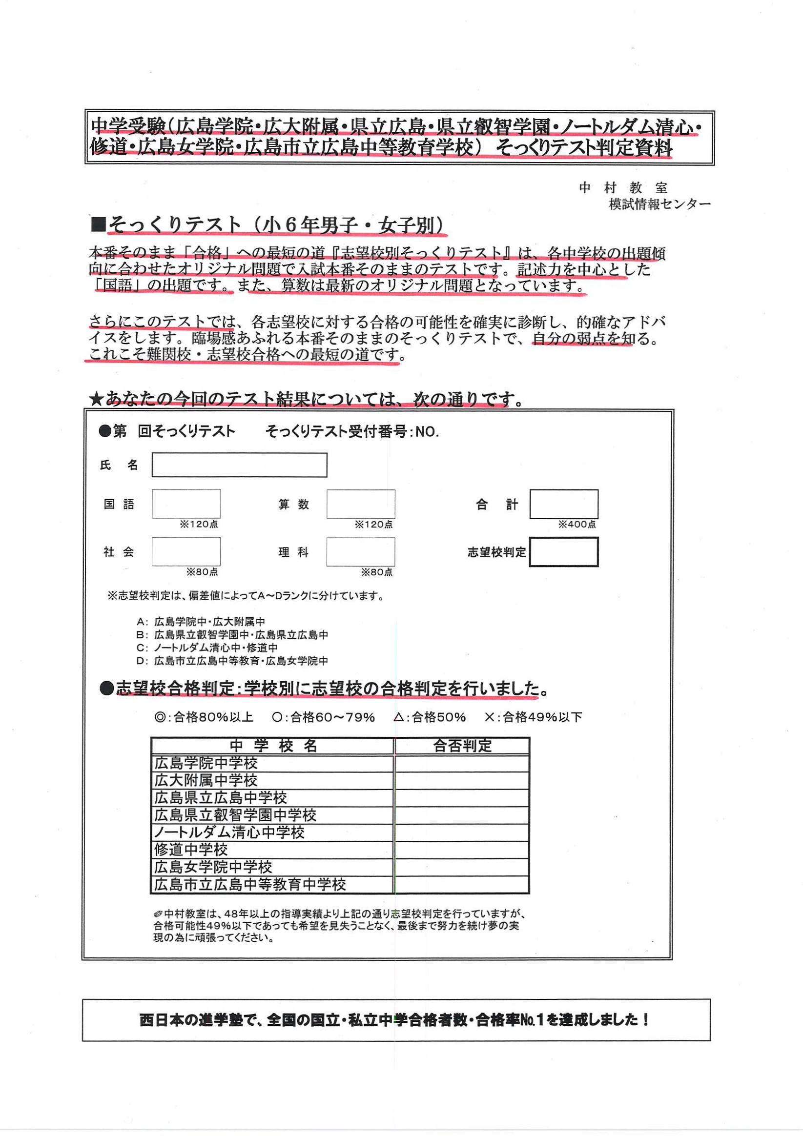 2025年09月15日 2026年版 【広島地区中学入試】そっくりテスト判定資料