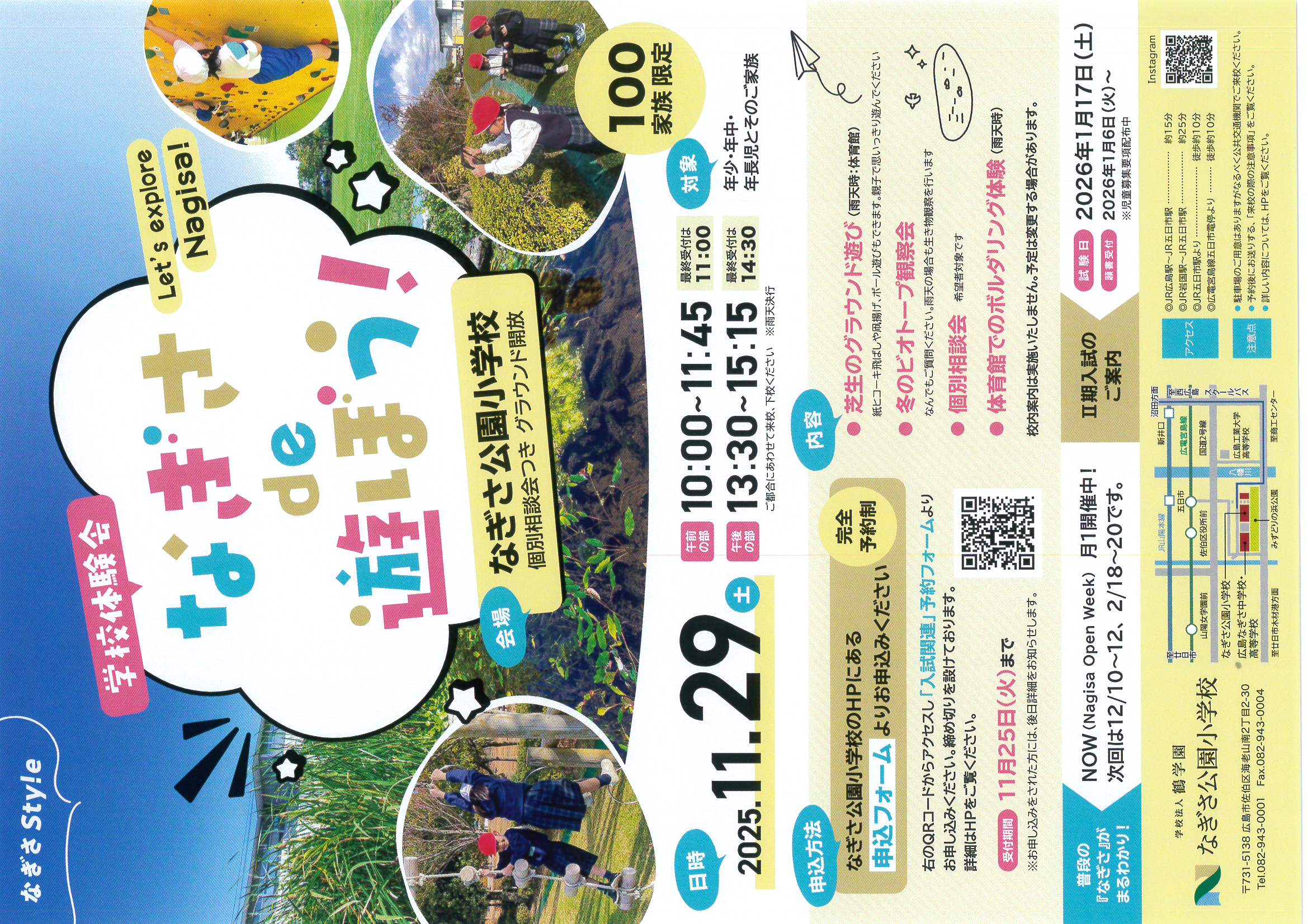 2025年10月03日 2026年 【なぎさ公園小学校】 学校体験会他