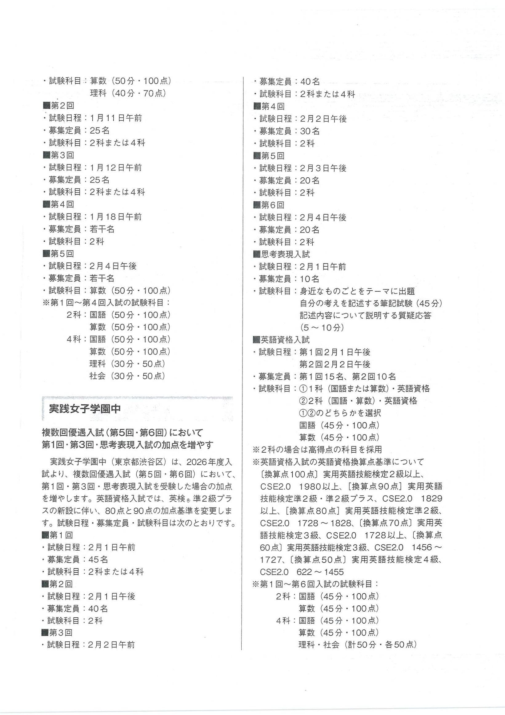 2025年09月23日 2026年 【首都圏地区中学入試】最新入試情報(10月)