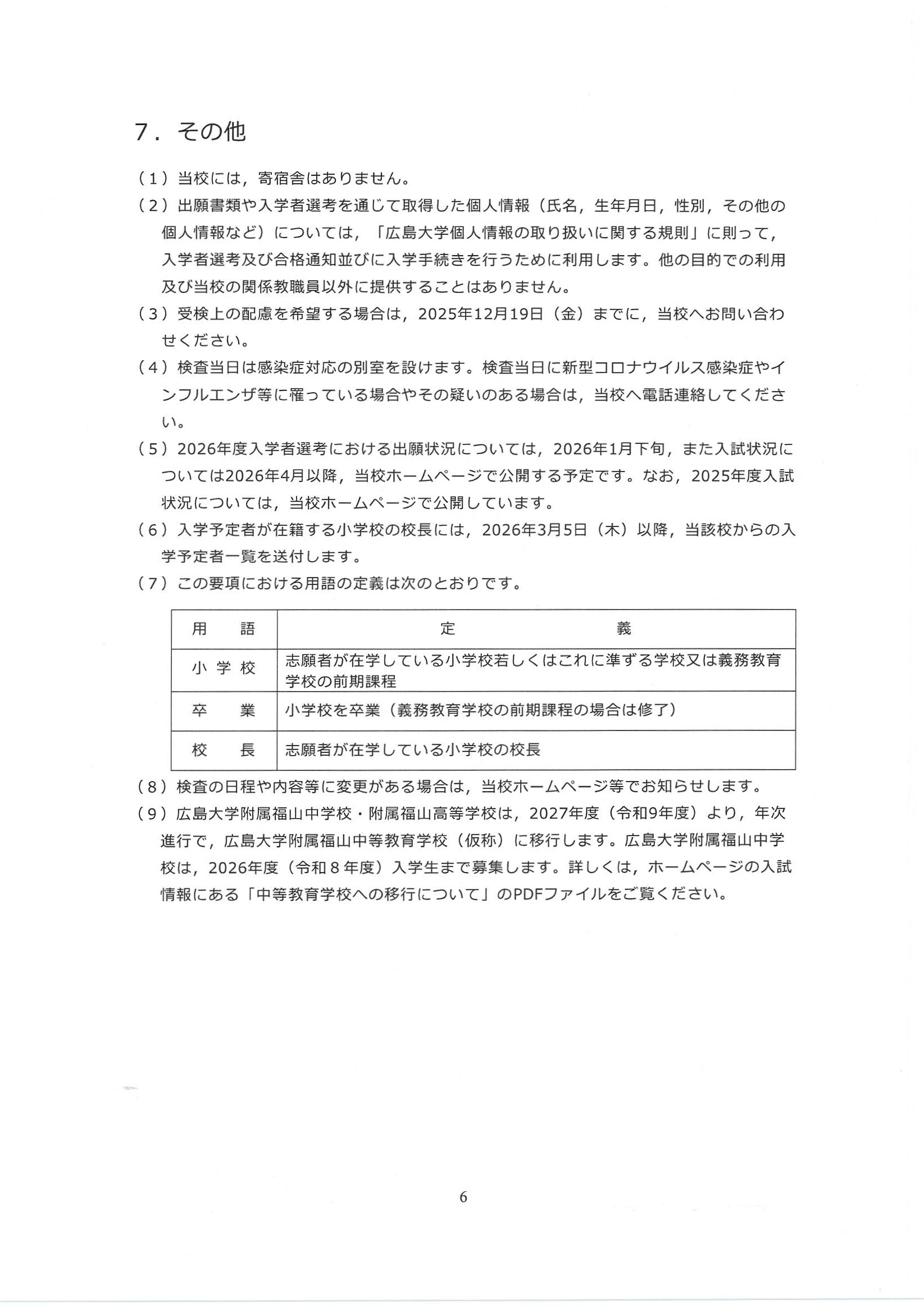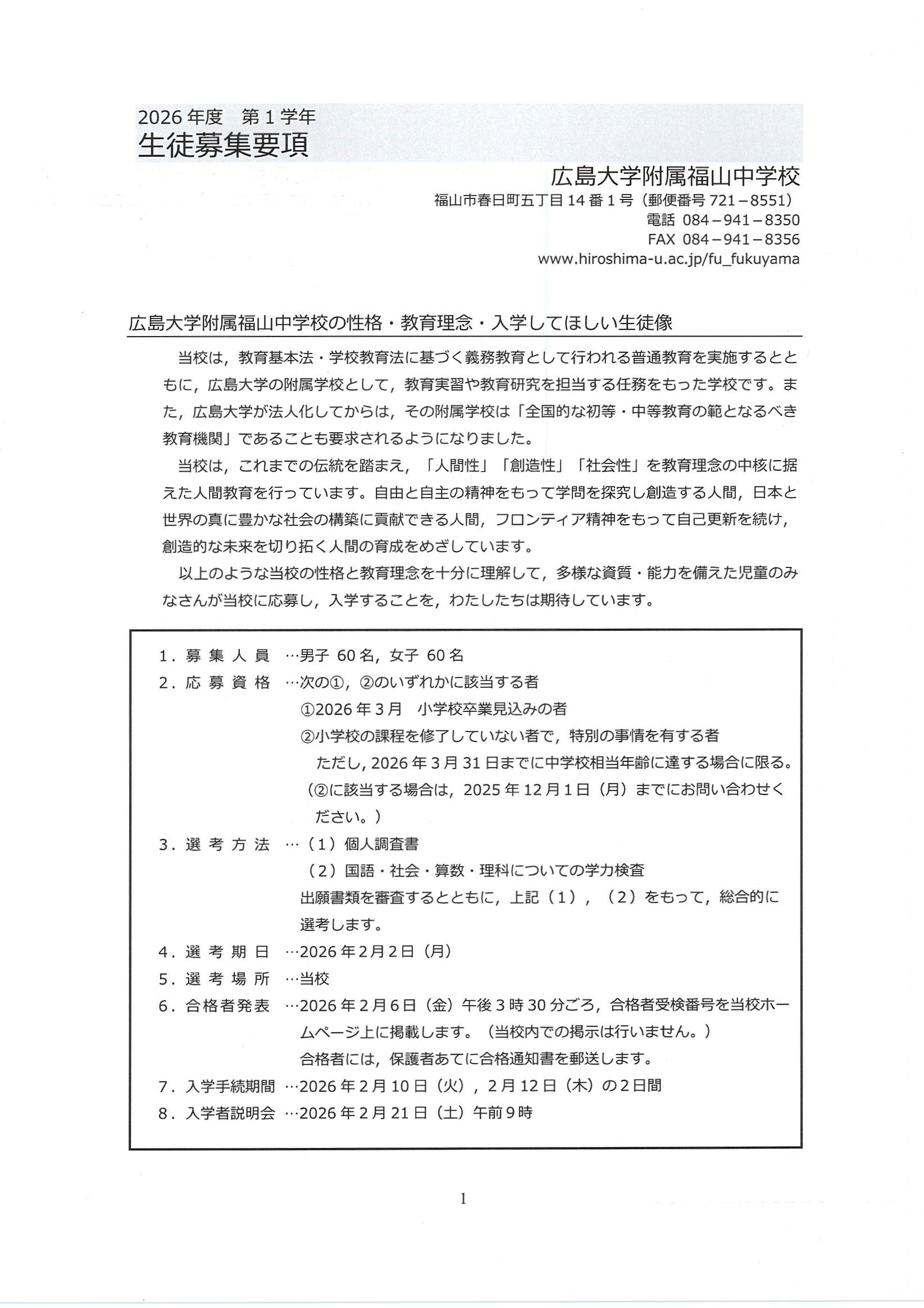 2025年11月02日 2026年 【広大附属福山中学校】生徒募集要項