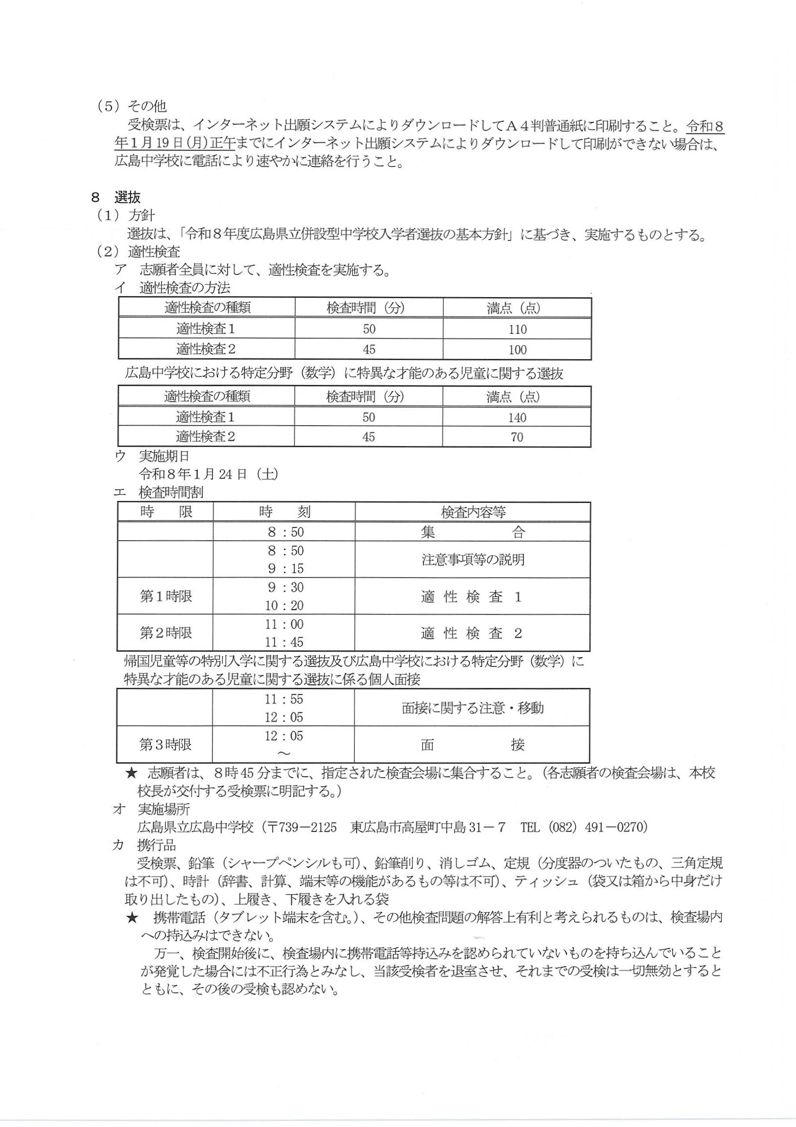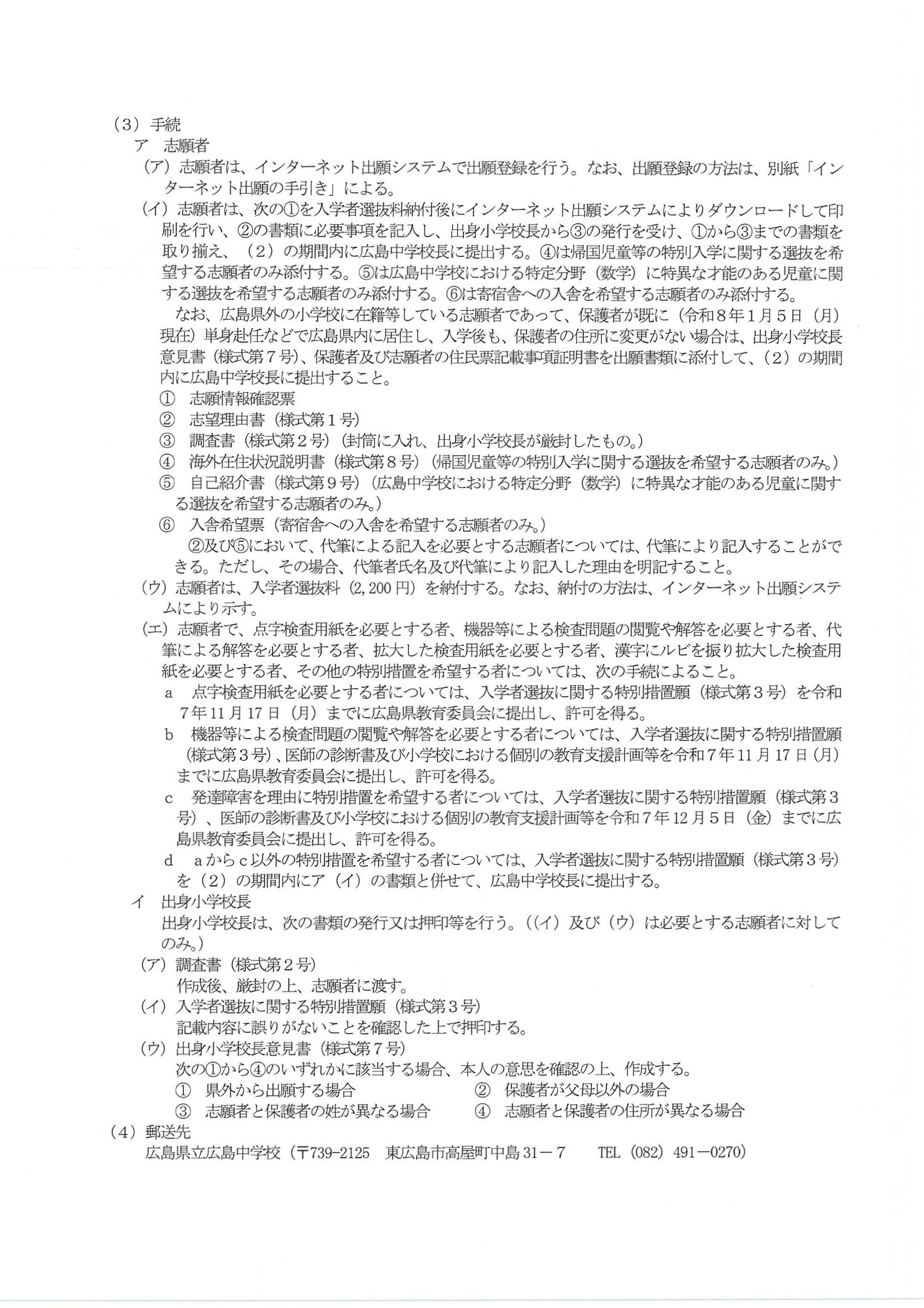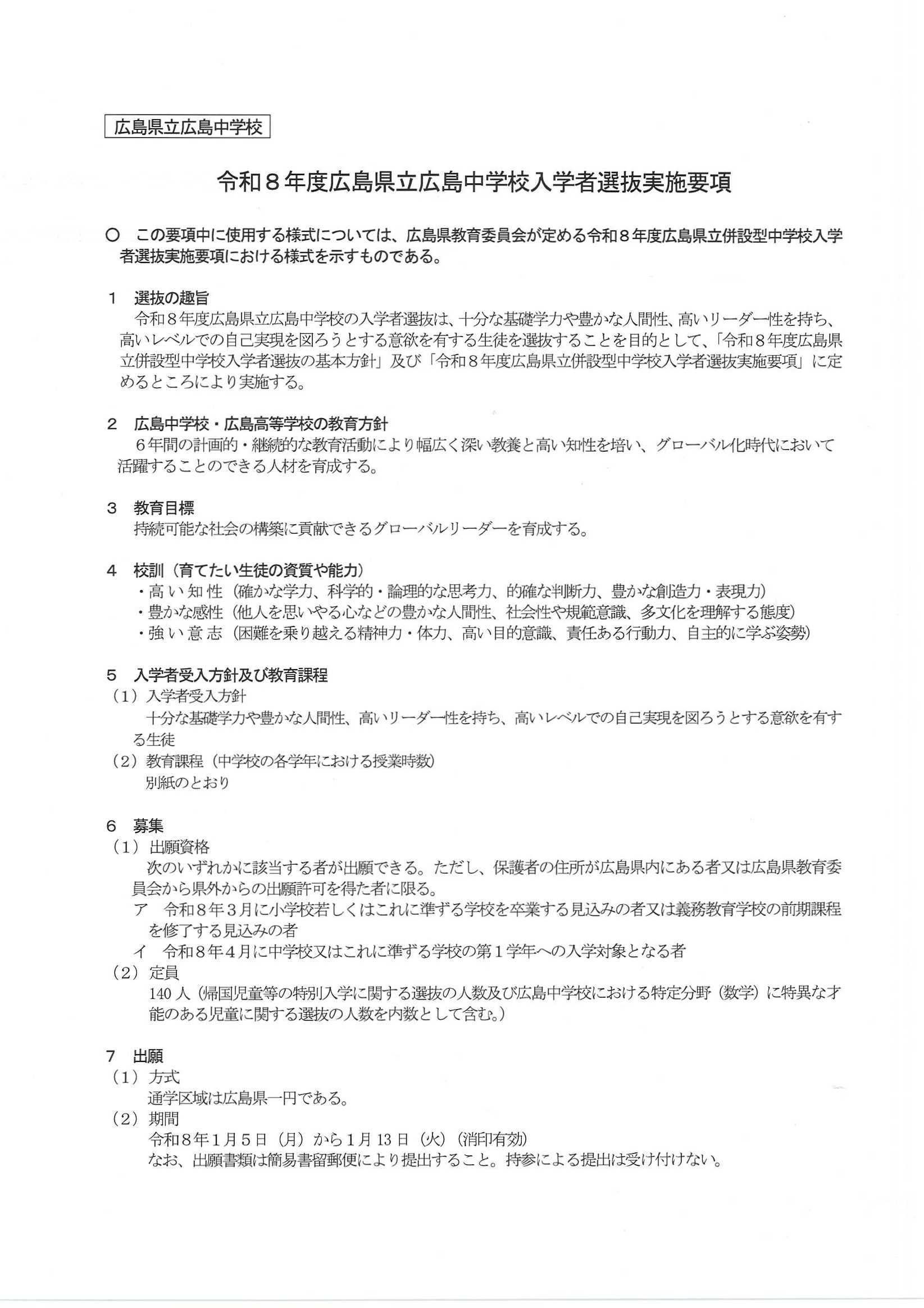 2025年11月13日 2026年 【広島県立広島中学校】入学者選抜実施要項