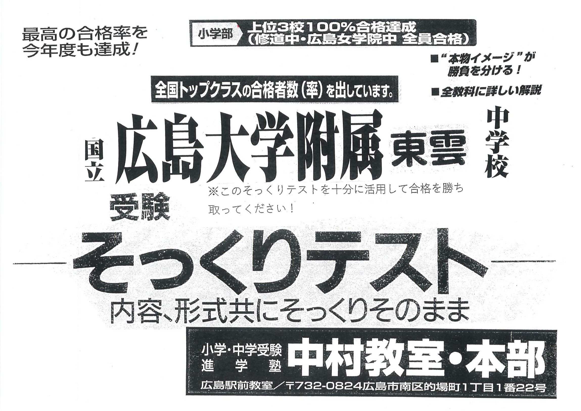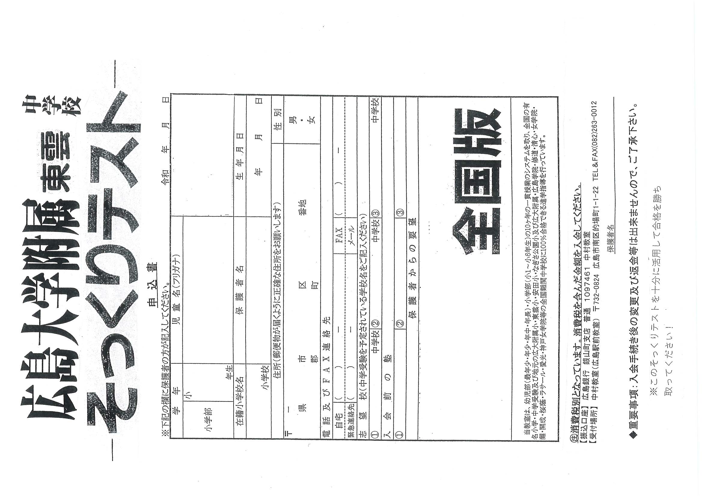 2025年09月11日 2025年 広大附属東雲中『そっくりテスト』購入の方へ!!