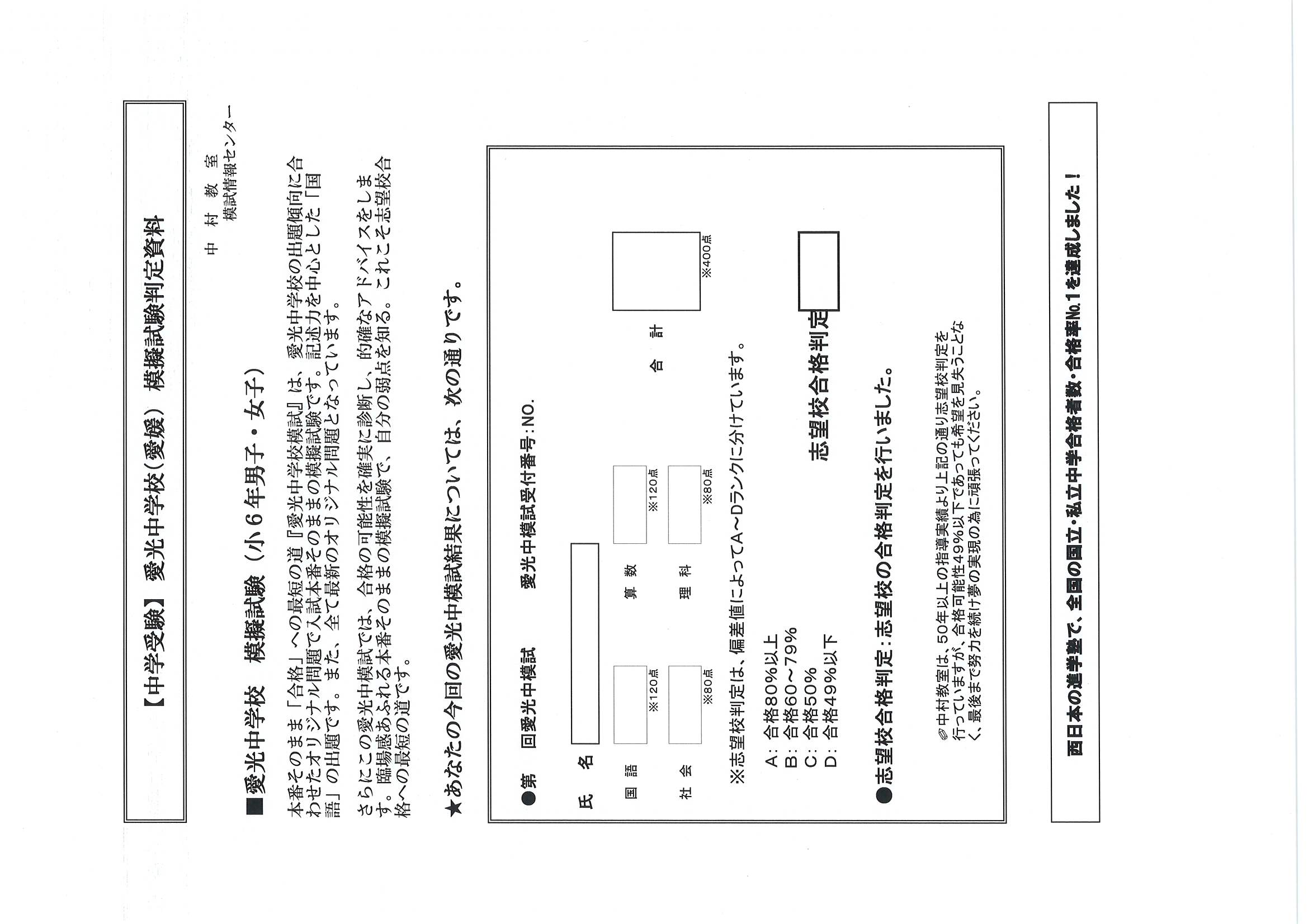 2025年09月25日 2026年版 【愛光中学校】模擬試験判定資料
