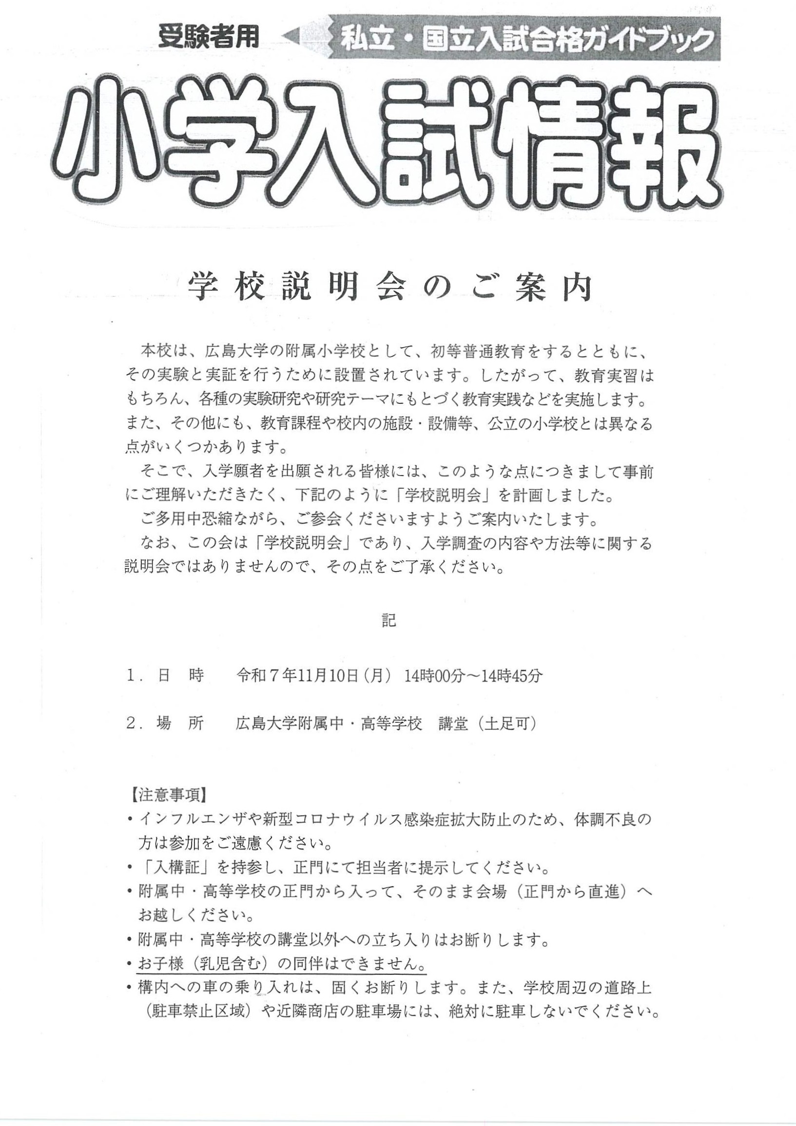 2025年10月09日 2026年 【広大附属小学校】 学校説明会
