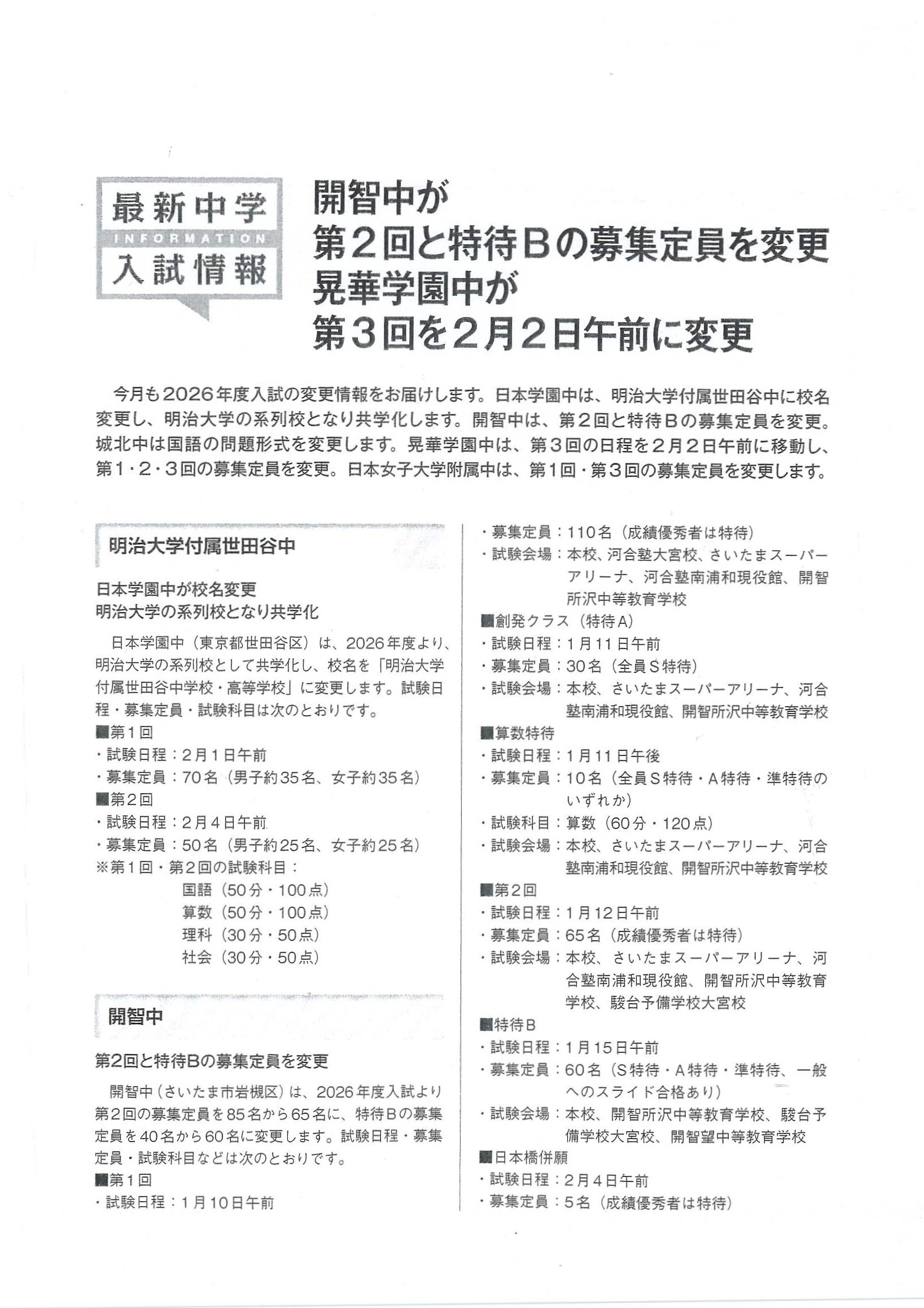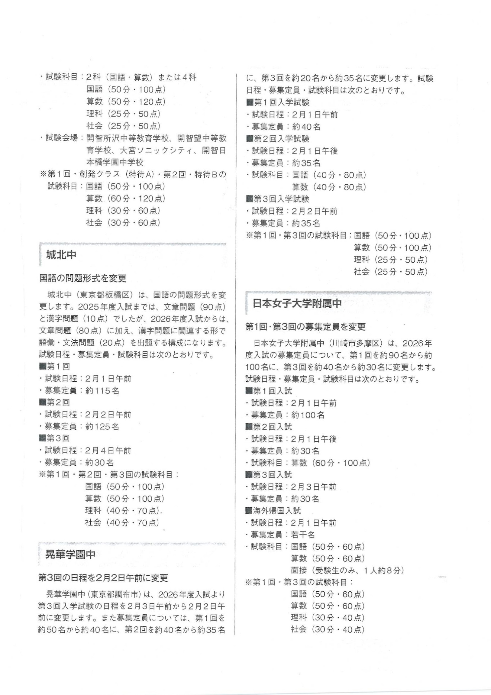 2025年10月19日 2026年 【首都圏地区中学入試】最新入試情報(11月)