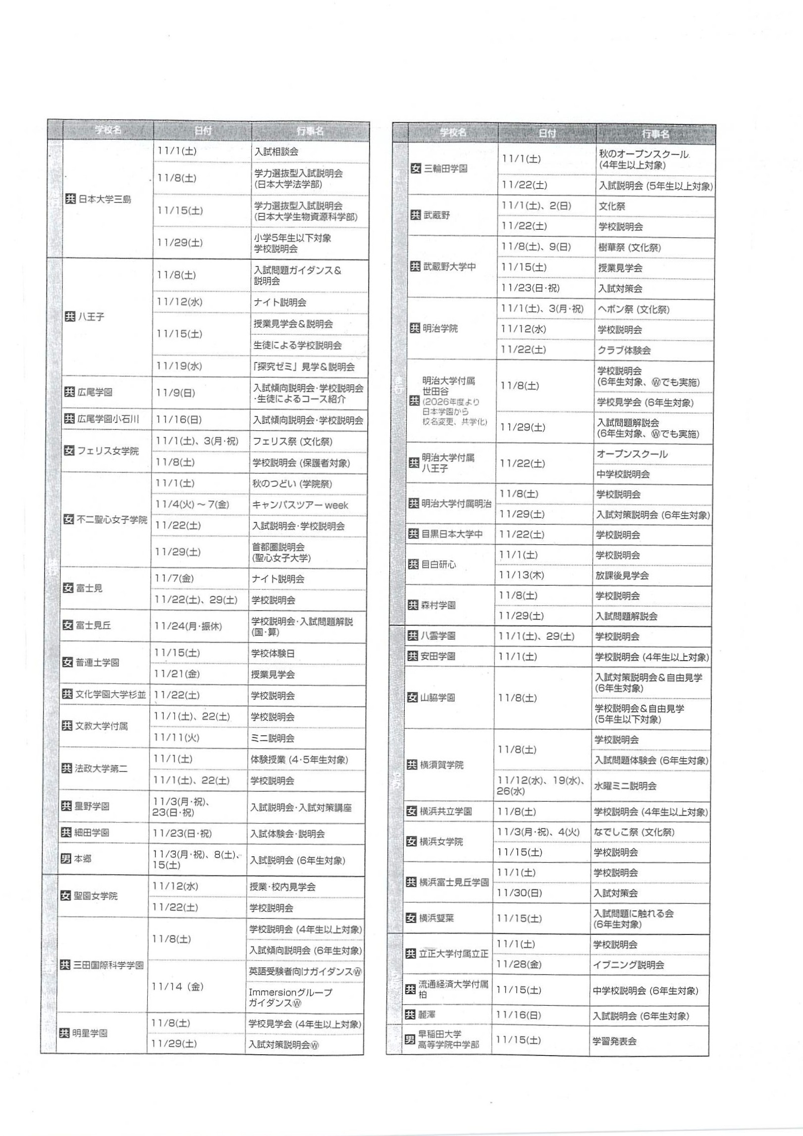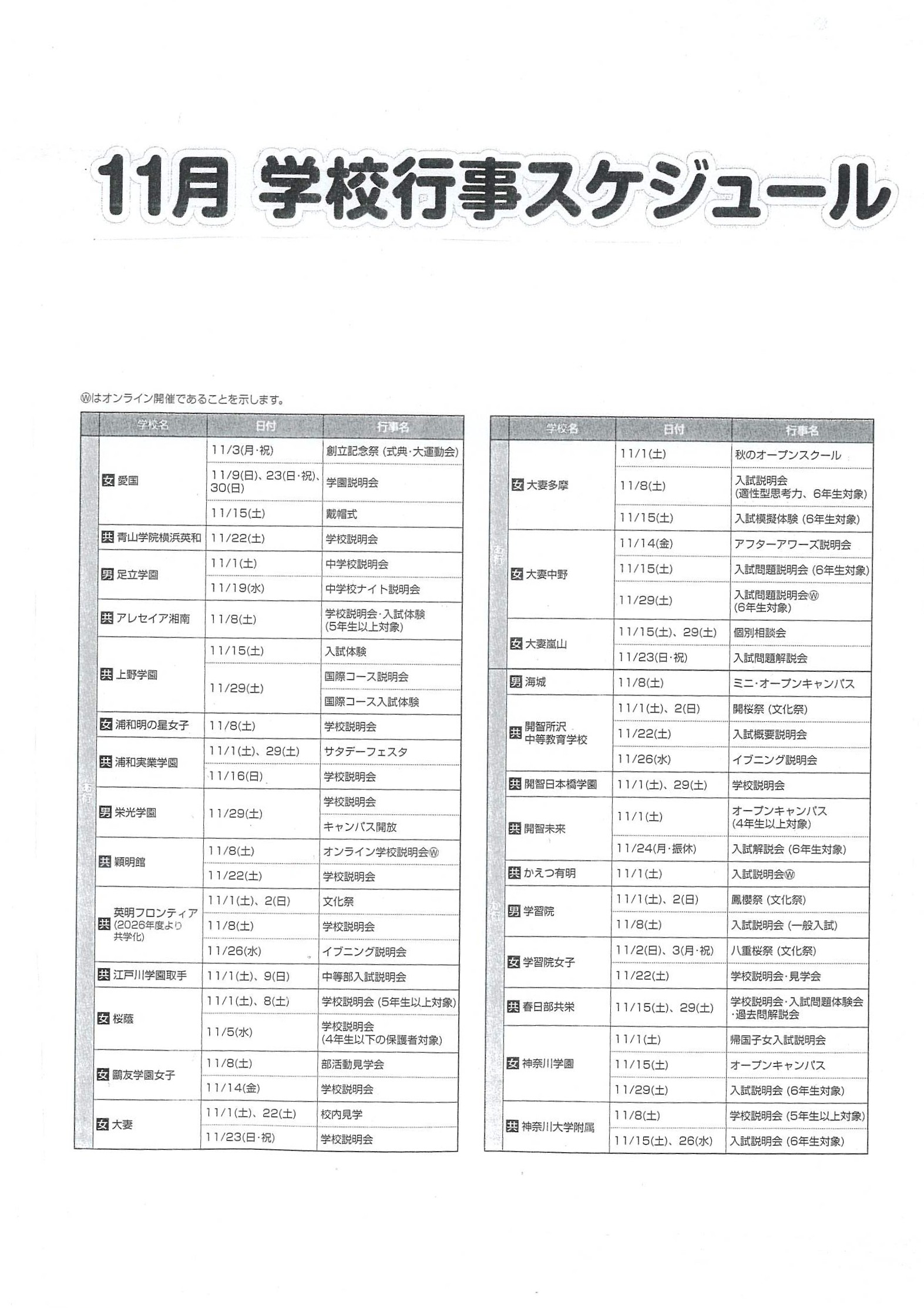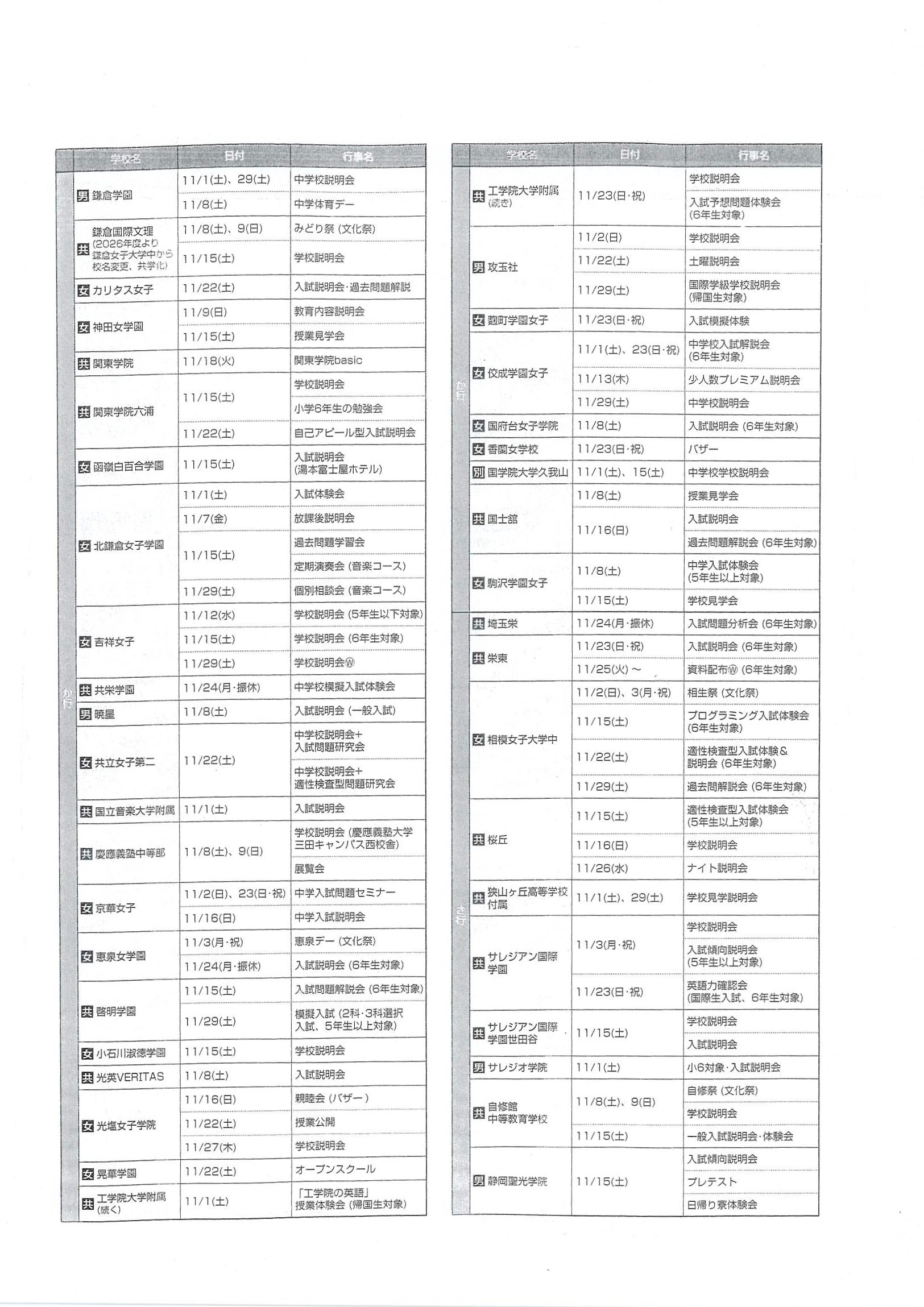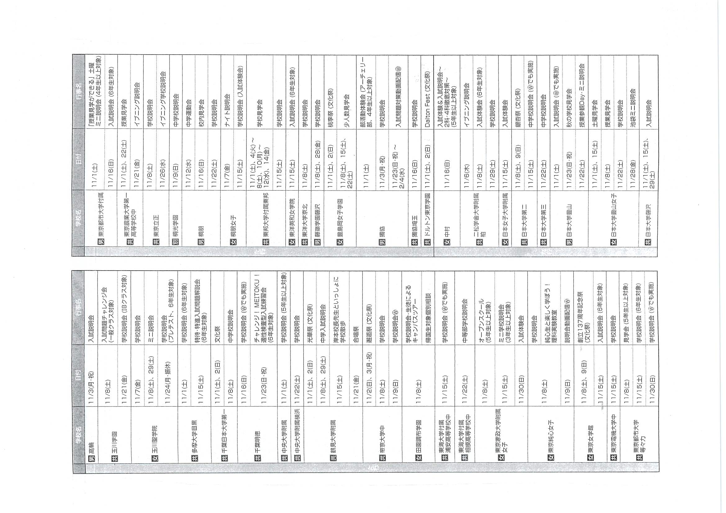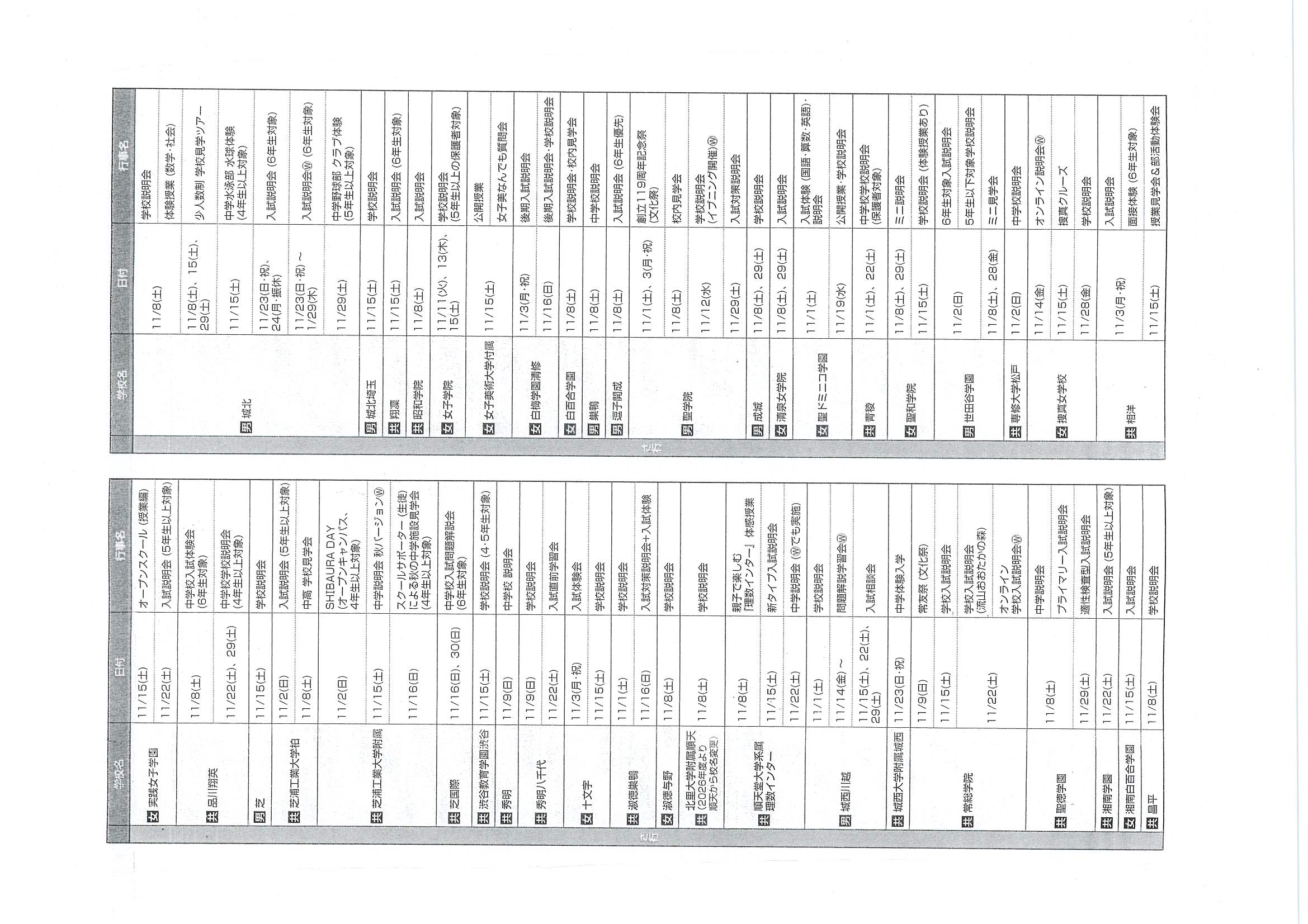 2025年10月19日 2026年 【首都圏中学入試】学校行事スケジュール(11月)