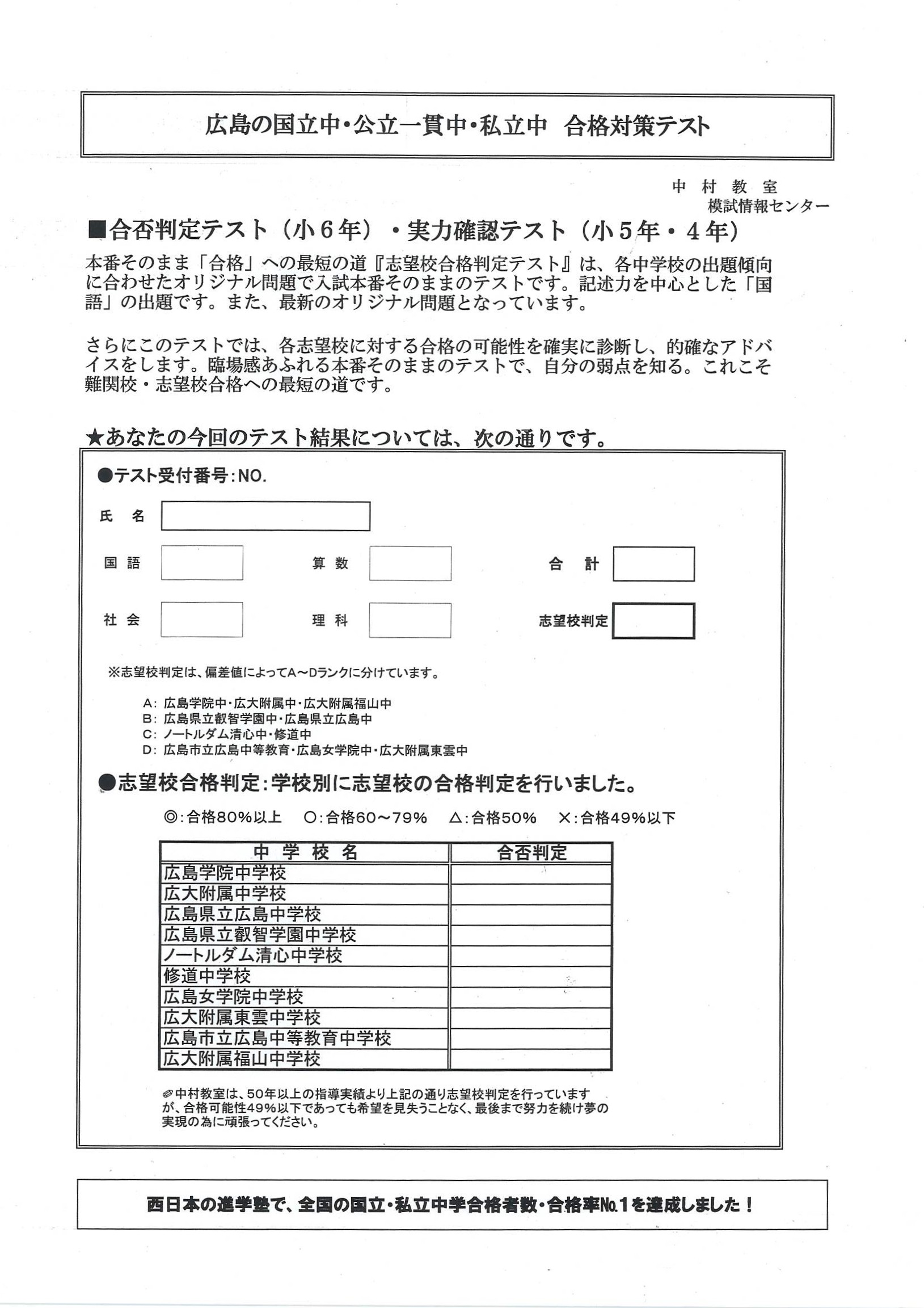 2025年11月16日 ✐広島の国立・公立一貫・私立中『合格対策テスト』✐