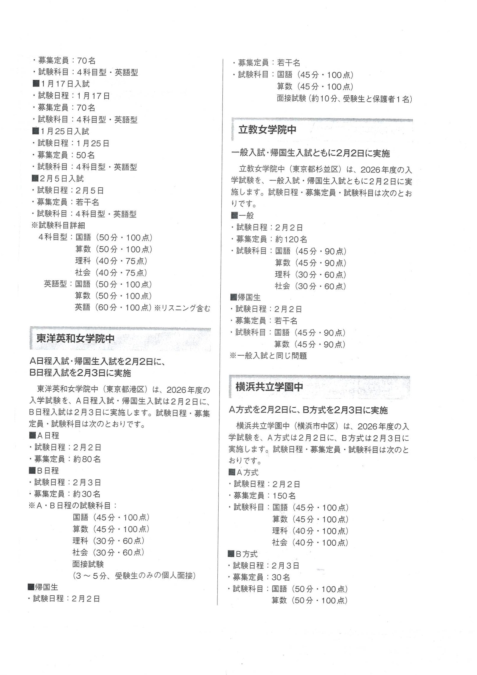 2025年11月19日 2026年 【首都圏地区中学入試】最新入試情報(12月)