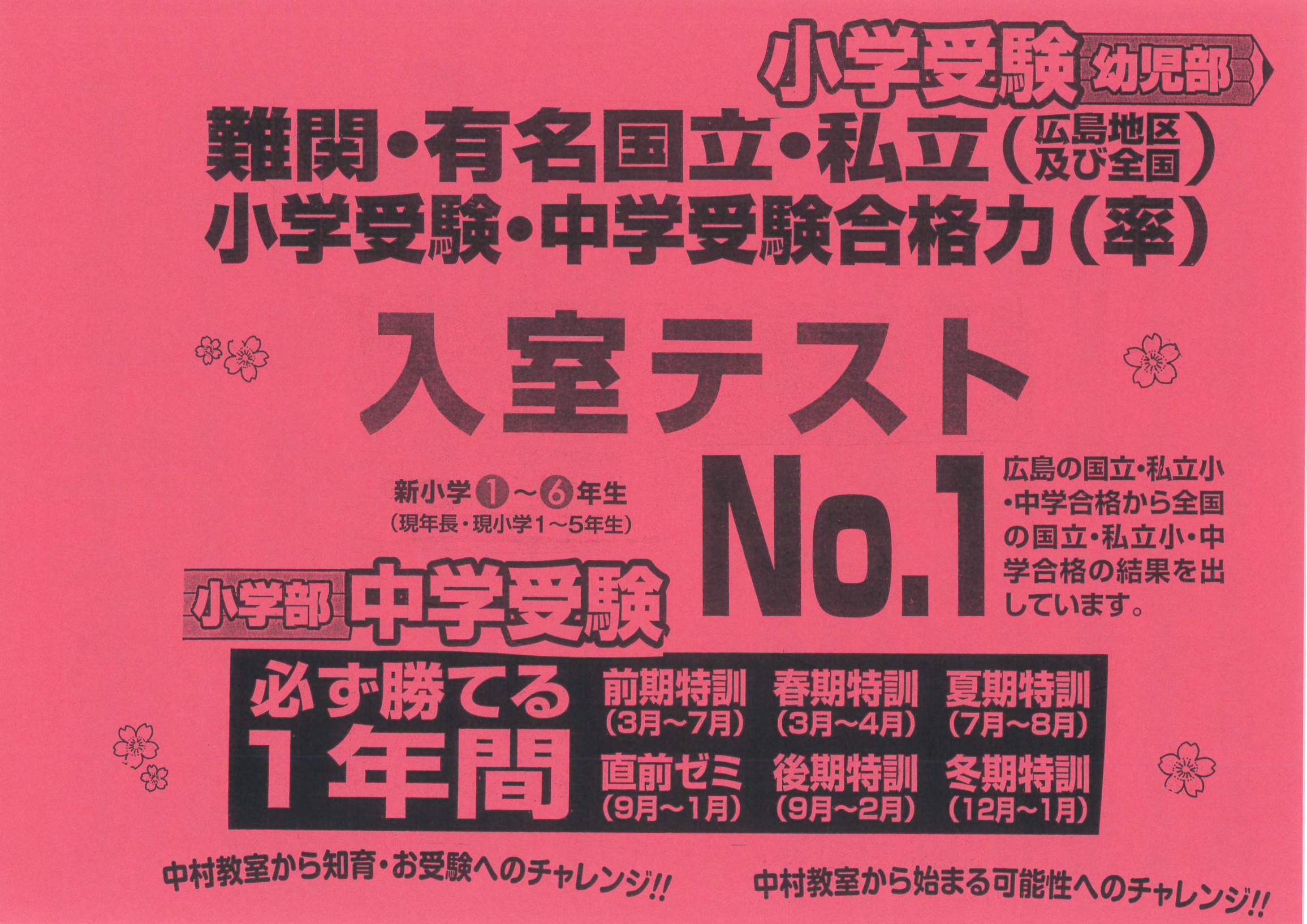 中村教室は全国対応、最高の合格率を今年度も達成。小学・中学受験合格力No1!