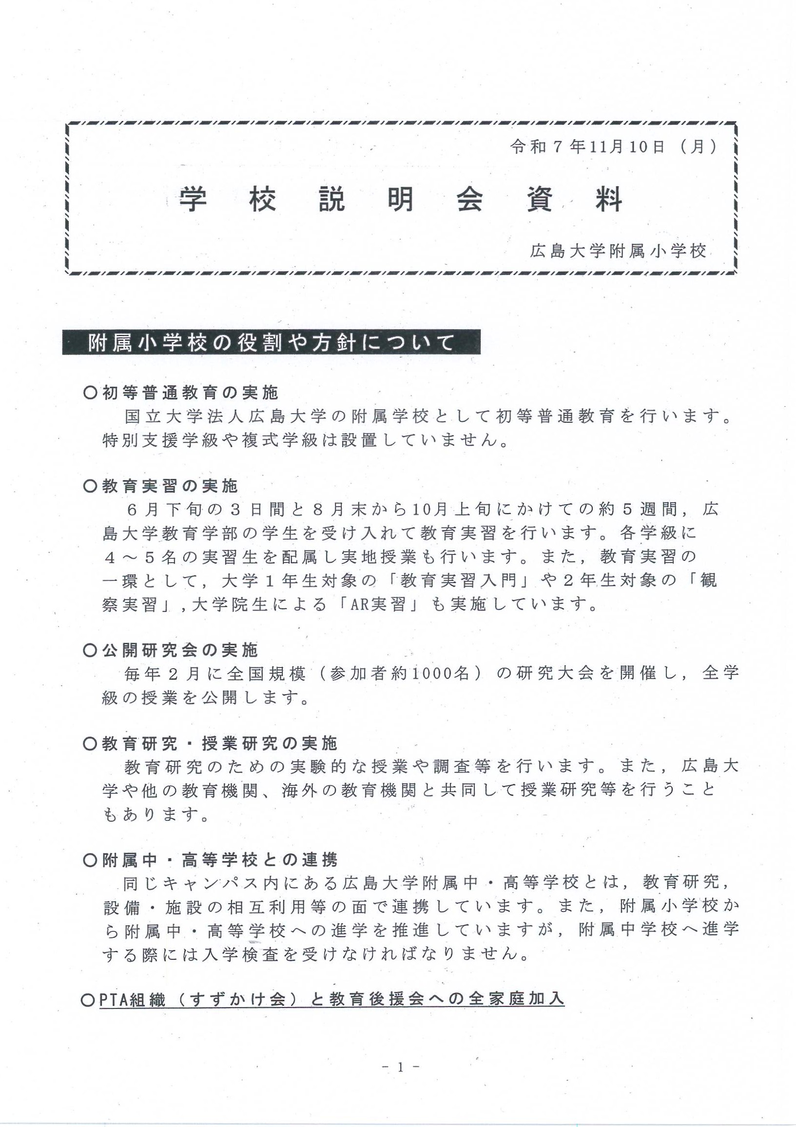 2025年11月11日 2026年 【広大附属小学校】 学校説明会 資料・その他