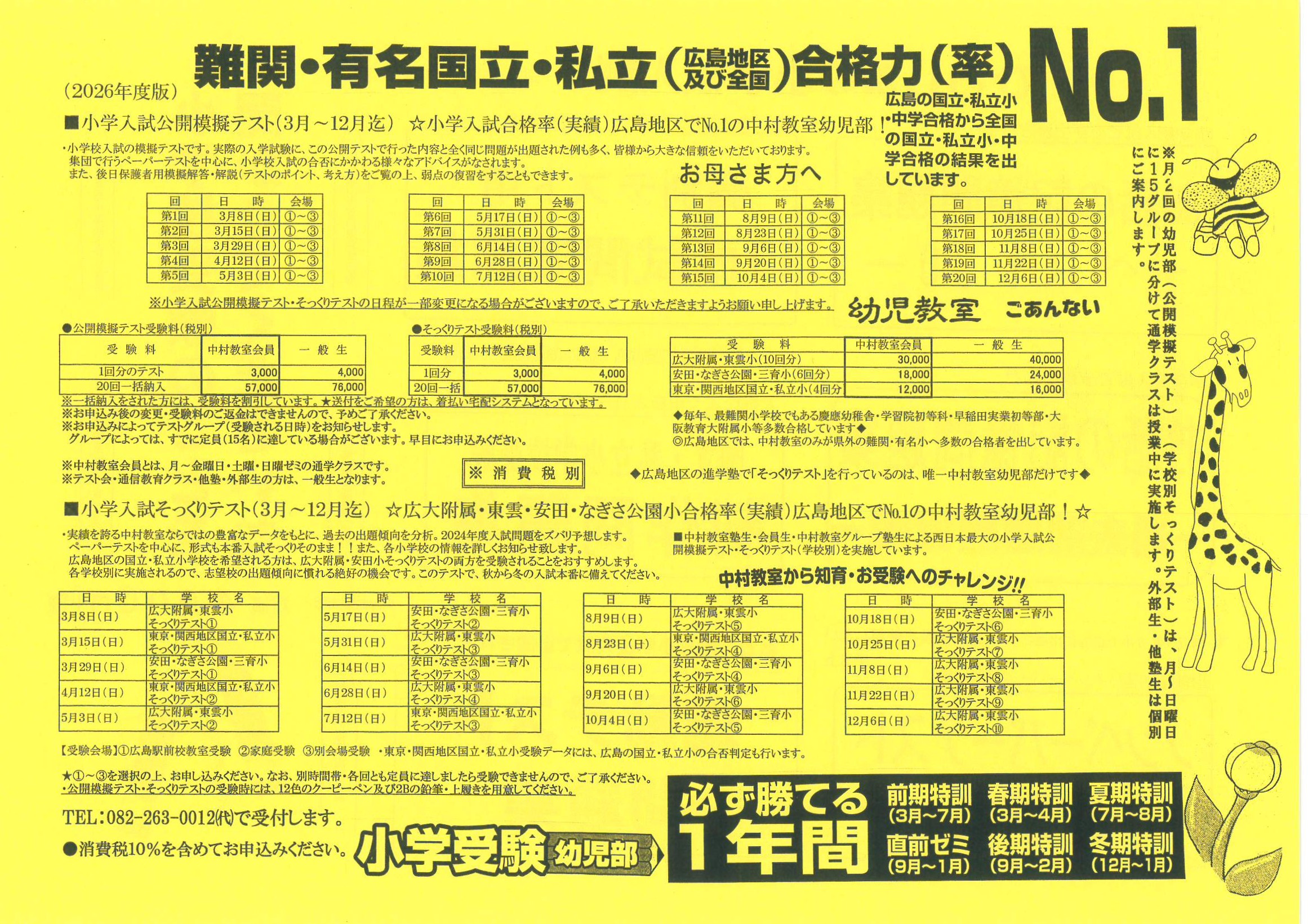 中村教室は全国対応、最高の合格率を今年度も達成。小学・中学受験合格力No1!
