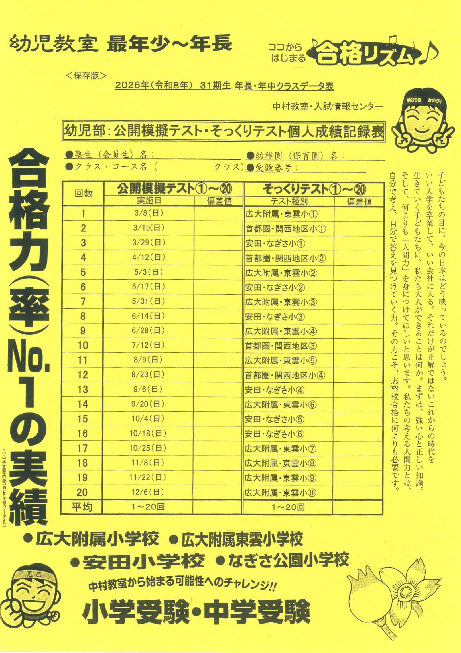 2025年11月04日 2026年 【幼児部】公開模擬・そっくり日程・個人成績記録表