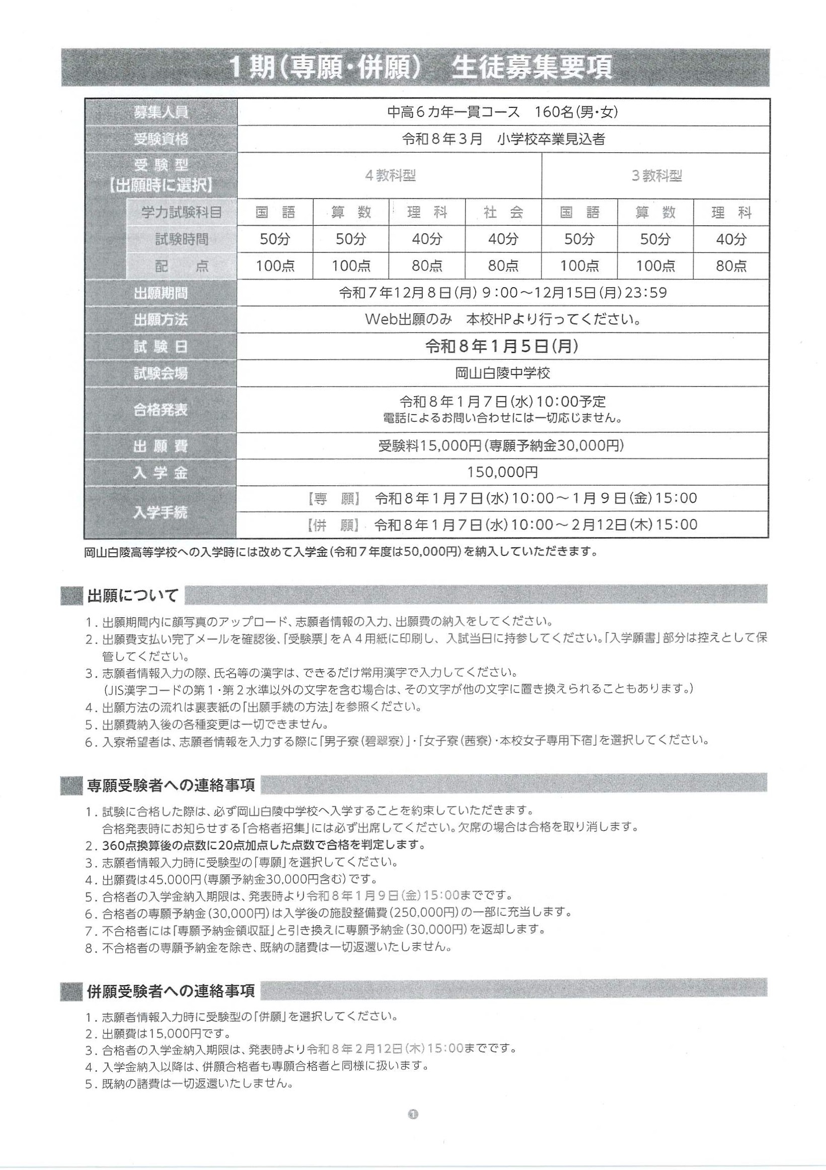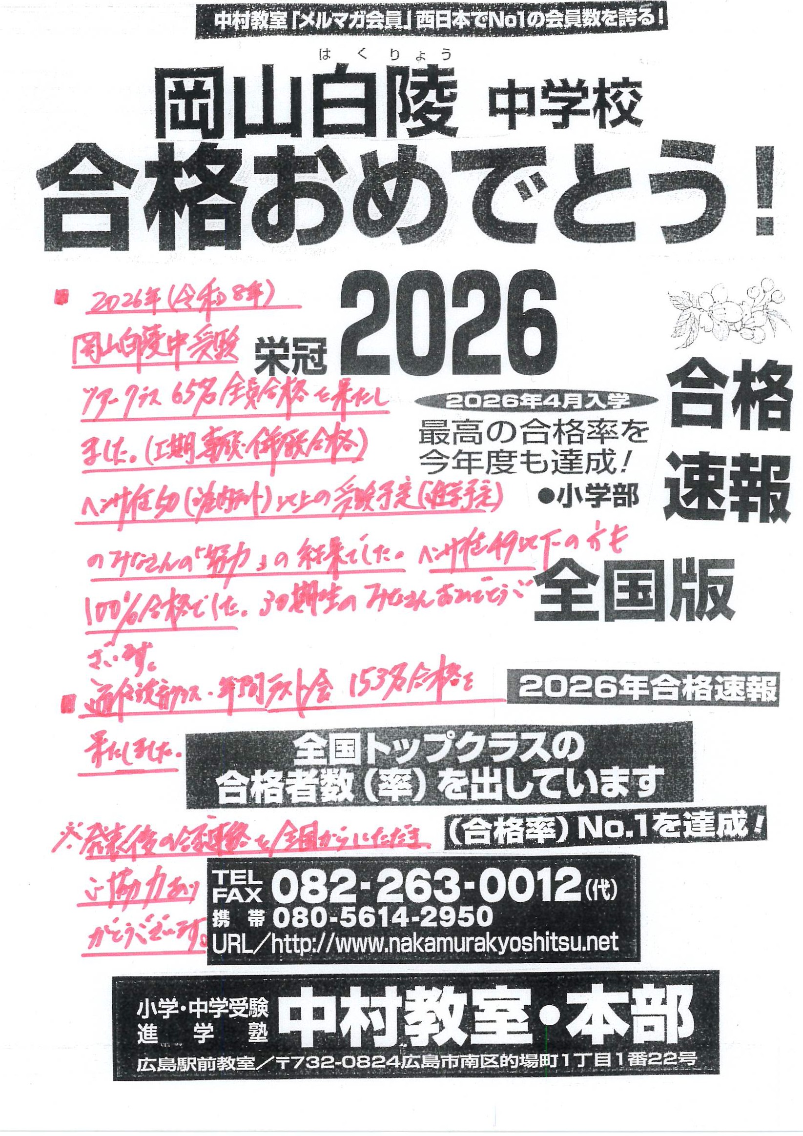 2026年01月08日 ✿2026年 ㊗岡山白陵中学校合格おめでとうございます!