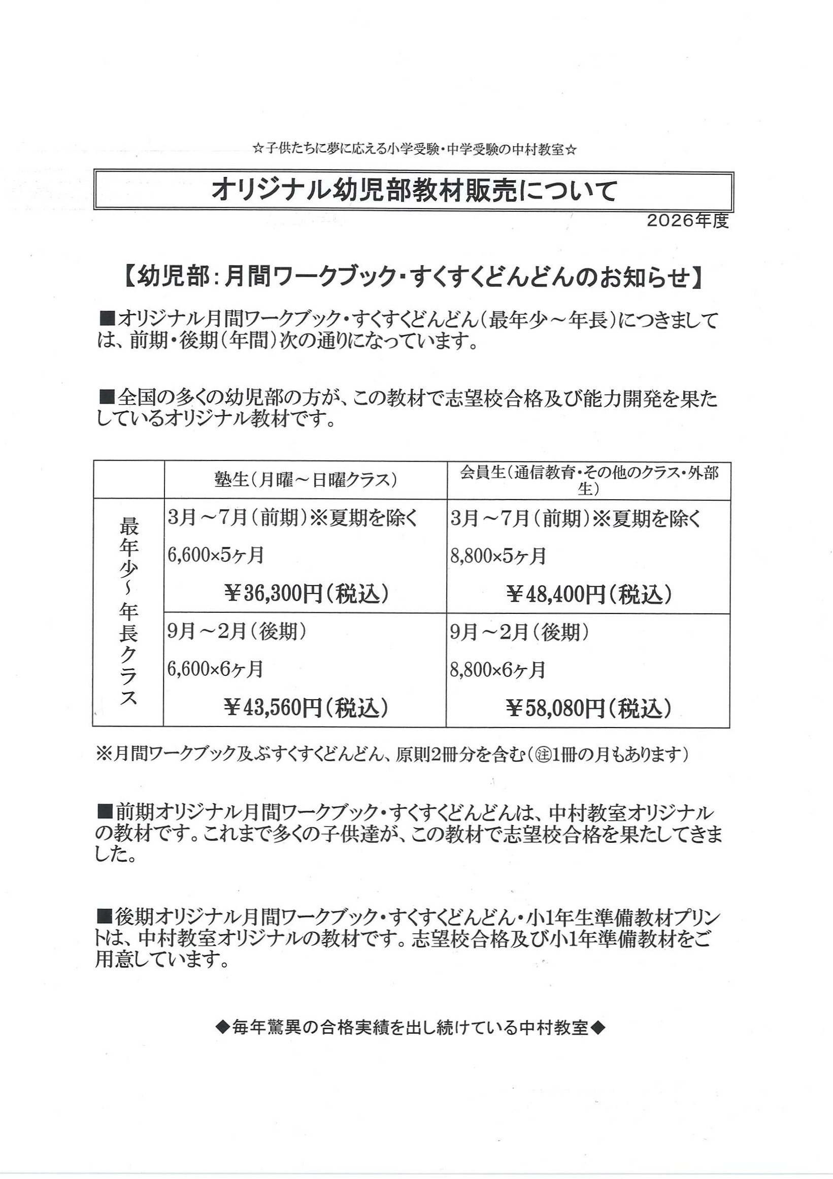 2025年11月28日 2026年版 【幼児部】 オリジナル教材 ~全国一斉販売~
