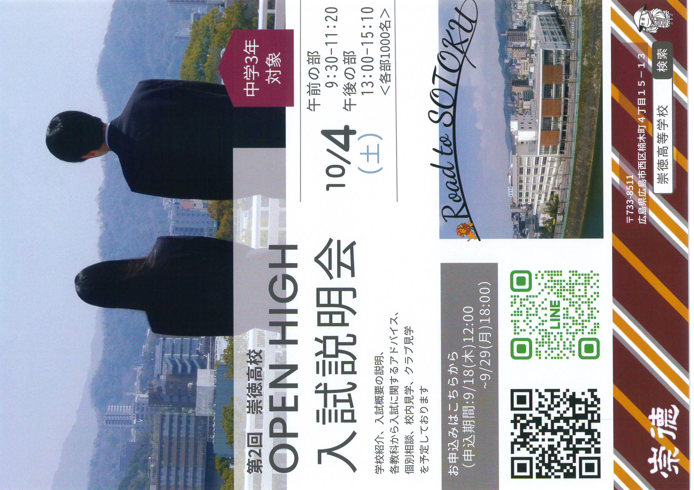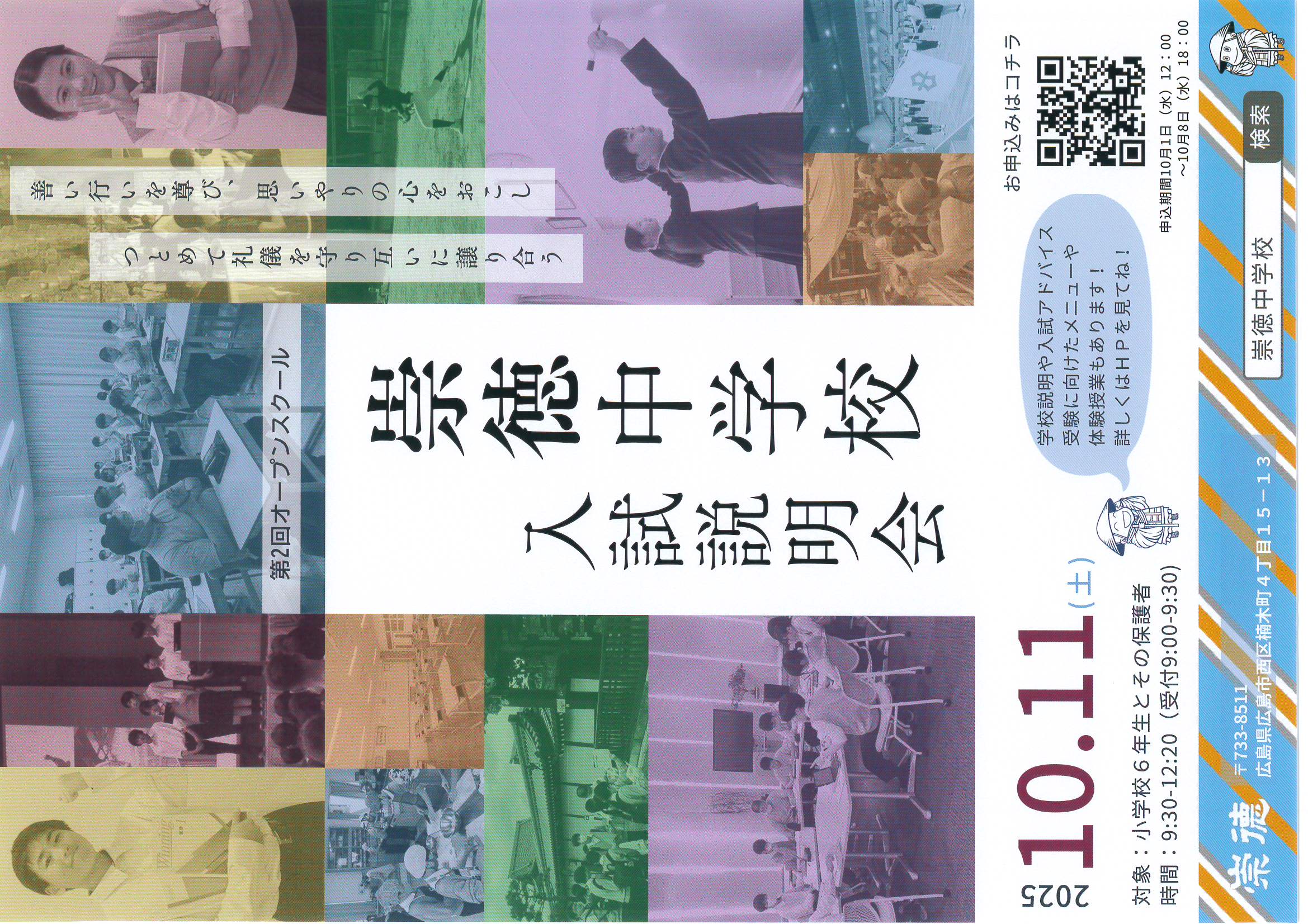 2025年09月09日 2026年 【崇徳中学校】 入試説明会、その他