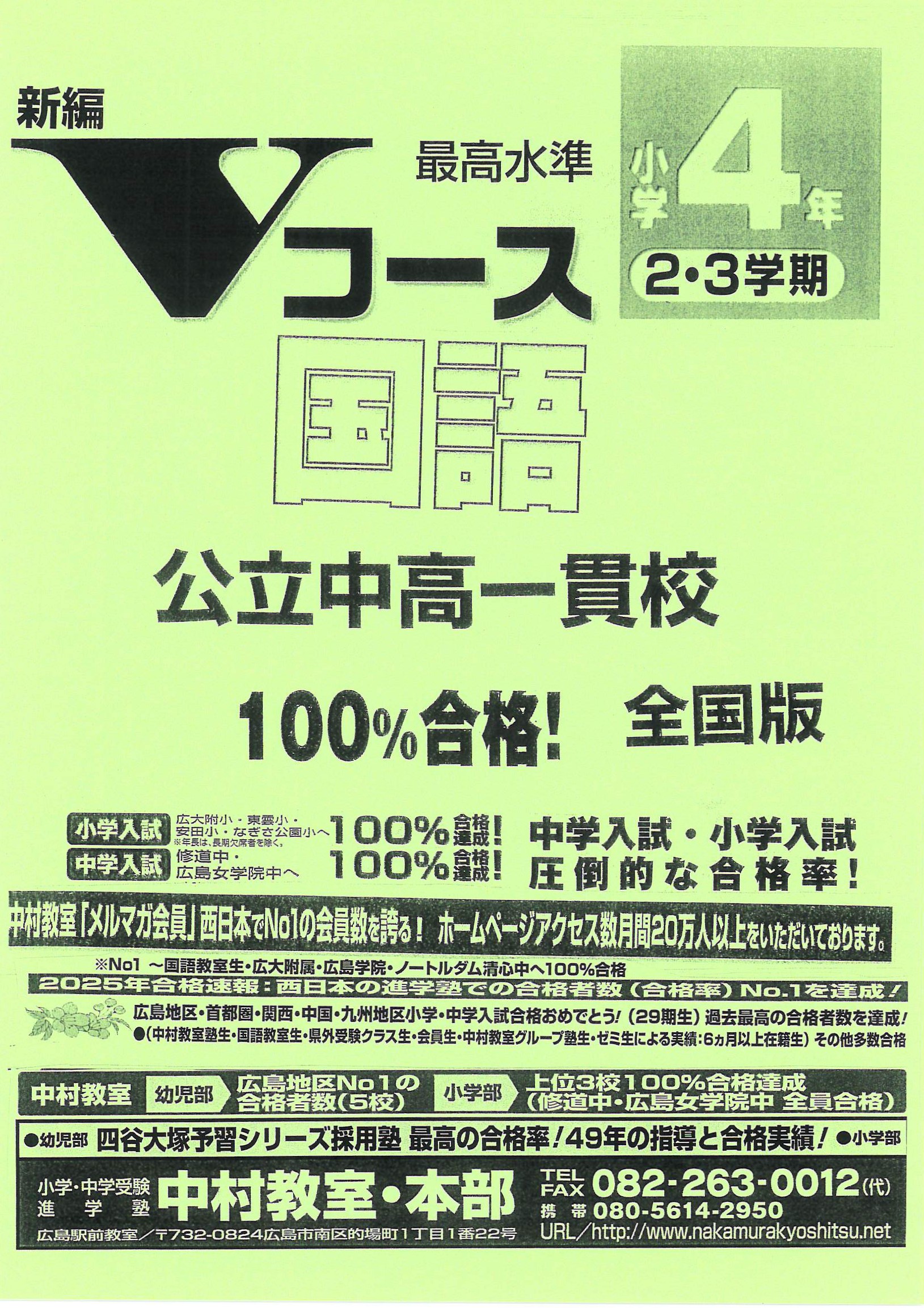 中村教室は全国対応、最高の合格率を今年度も達成。小学・中学受験合格力No1!