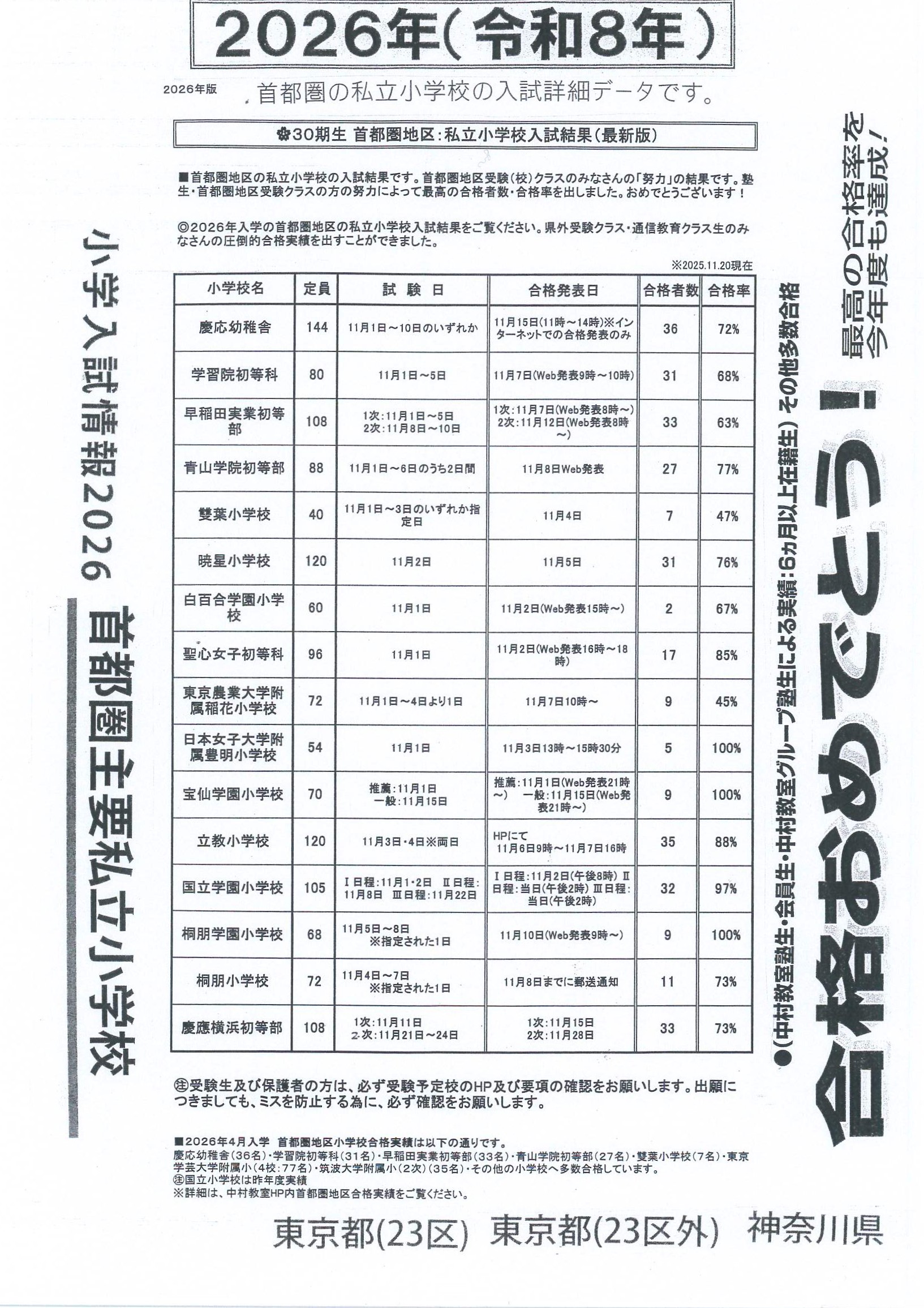 2025年11月20日 【合格速報】2026年 首都圏私立小学校合格おめでとう!③