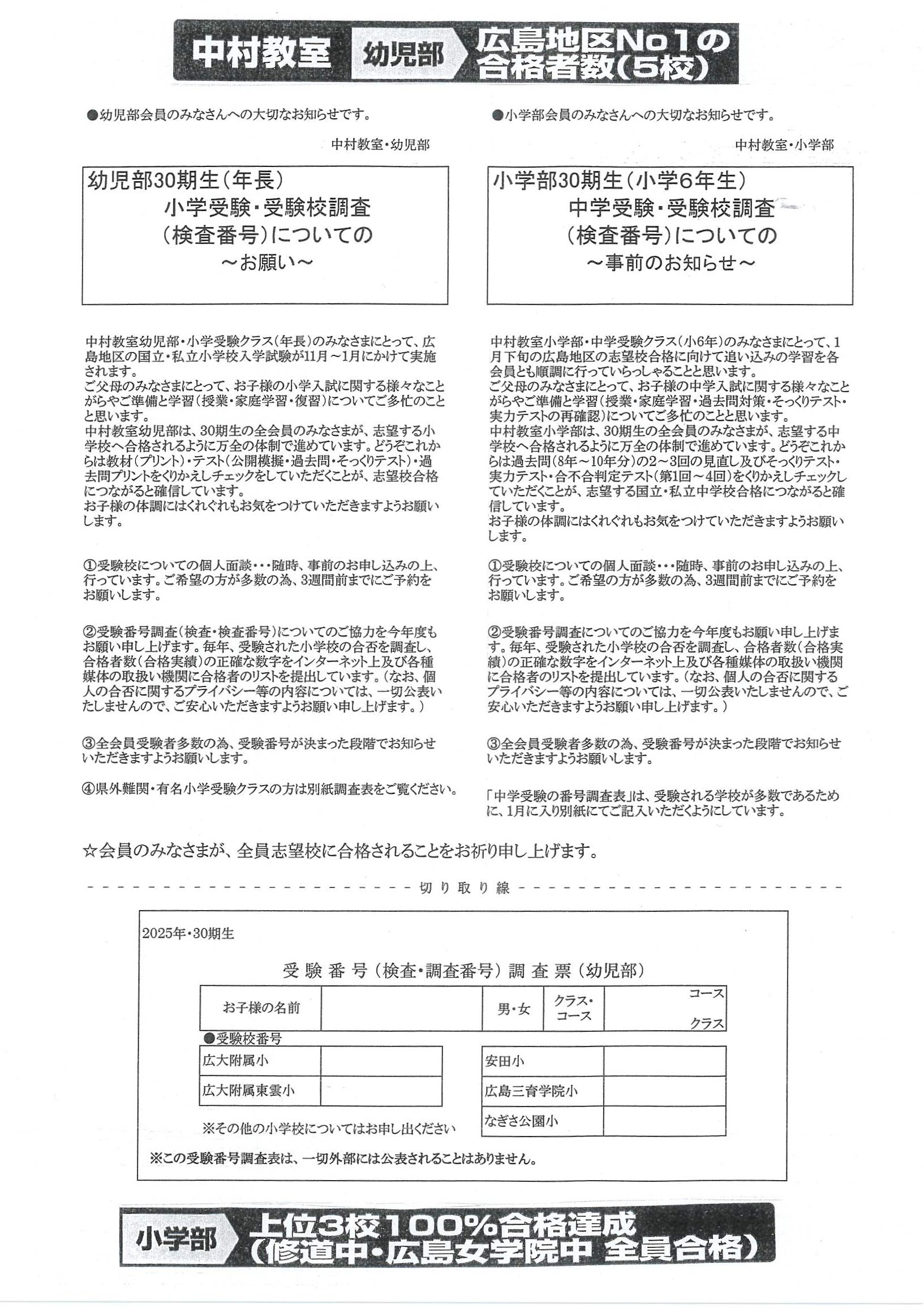 中村教室は全国対応、最高の合格率を今年度も達成。小学・中学受験合格力No1!