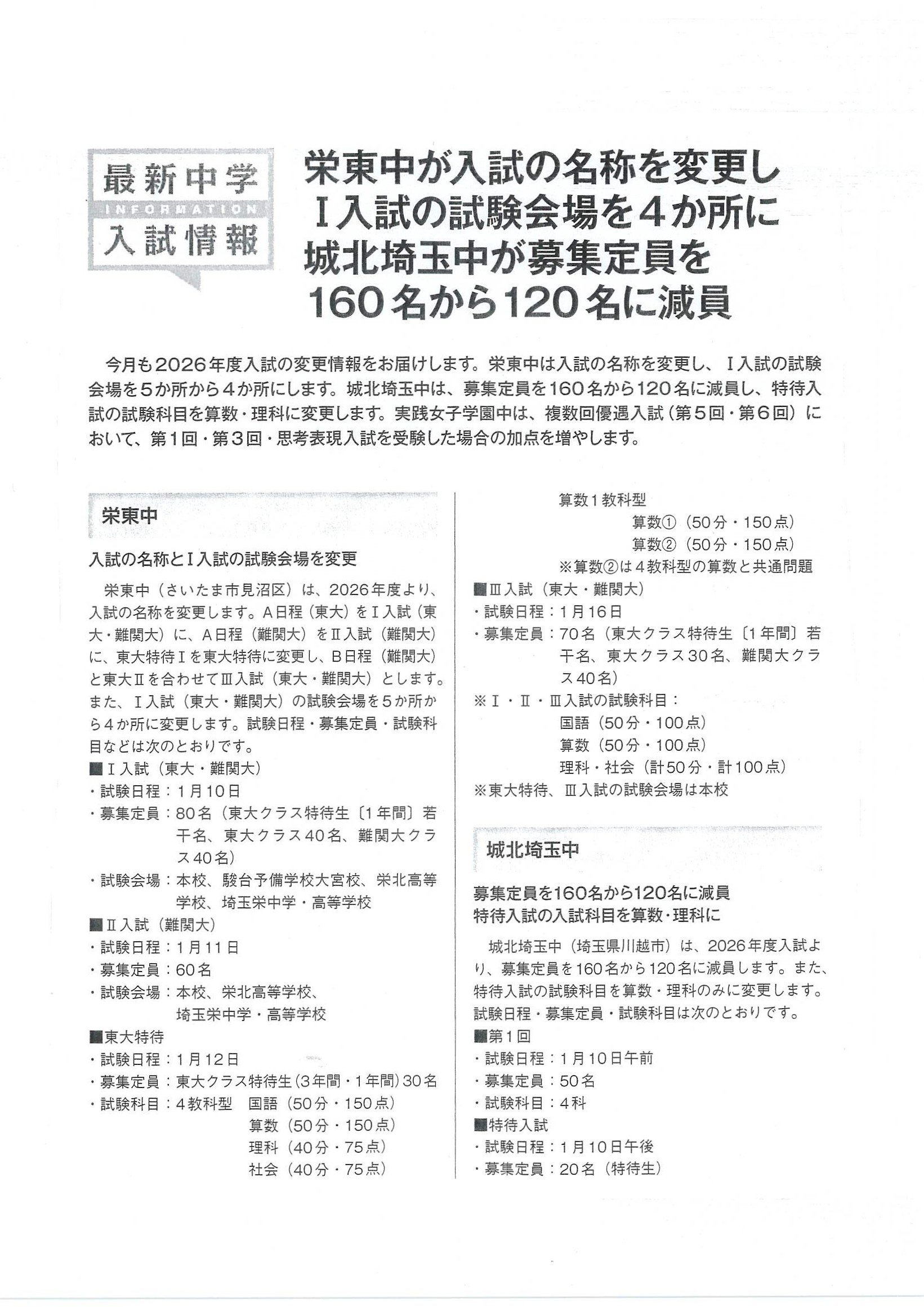 2025年09月23日 2026年 【首都圏地区中学入試】最新入試情報(10月)