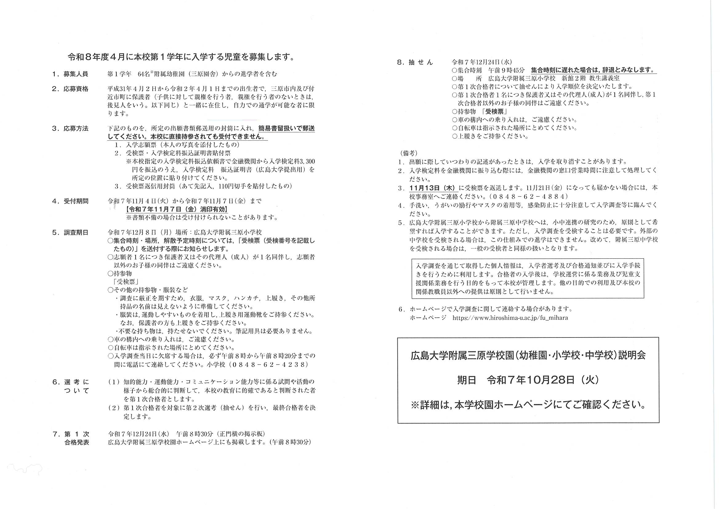 2025年10月10日 2026年 【広大附属三原小学校】児童募集要項