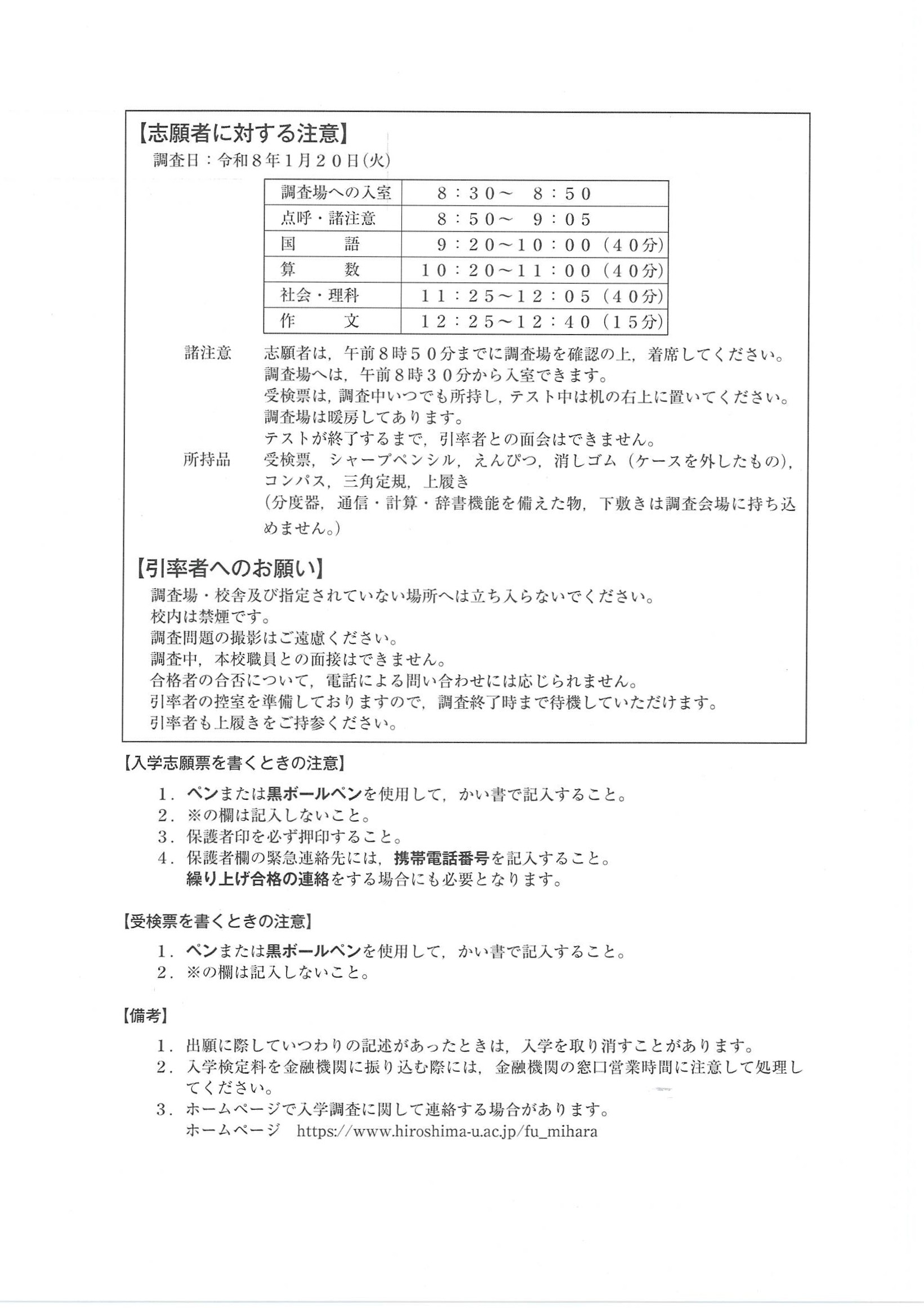 2025年11月02日 2026年 【広大附属三原中学校】生徒募集要項