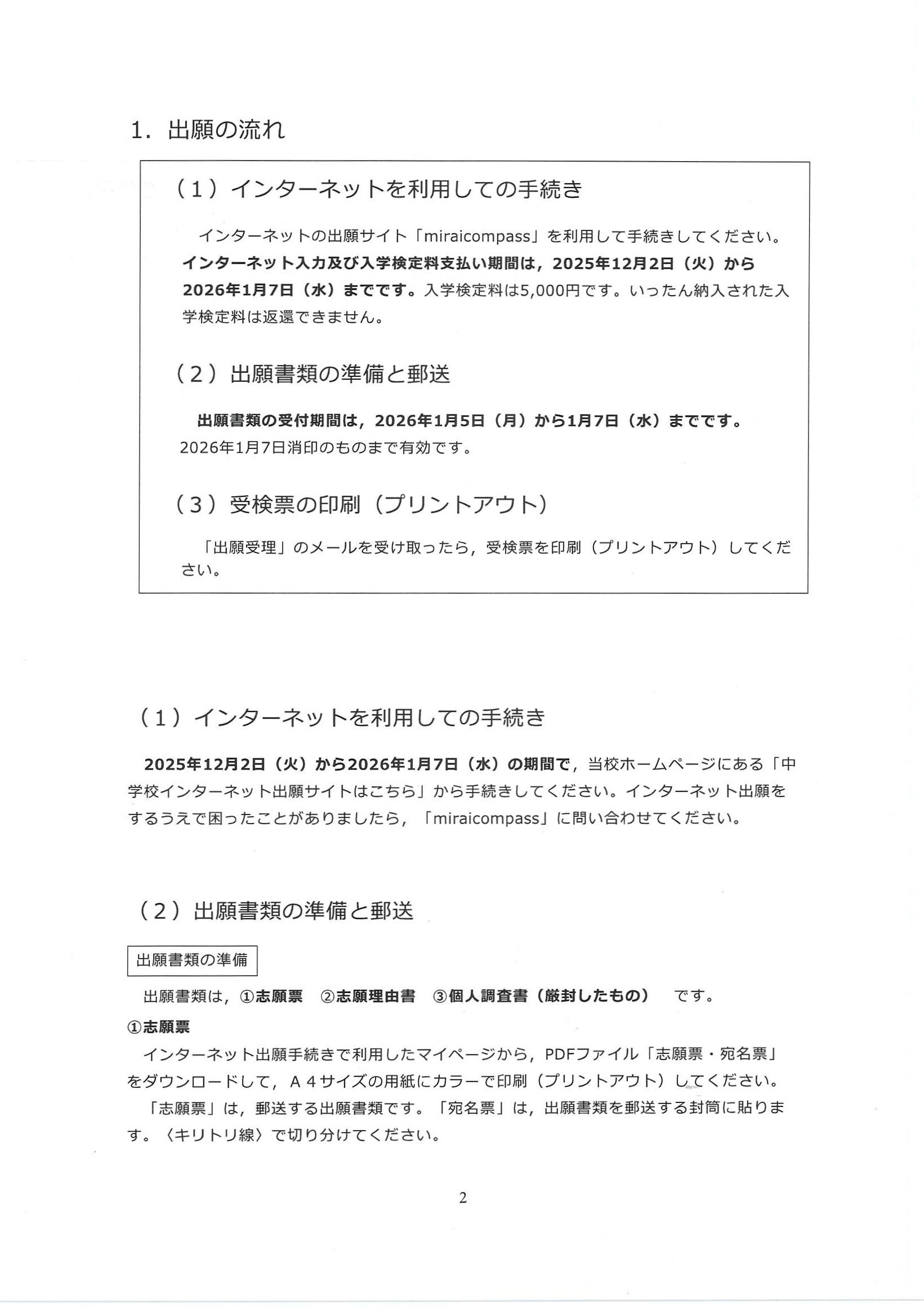 2025年11月02日 2026年 【広大附属福山中学校】生徒募集要項