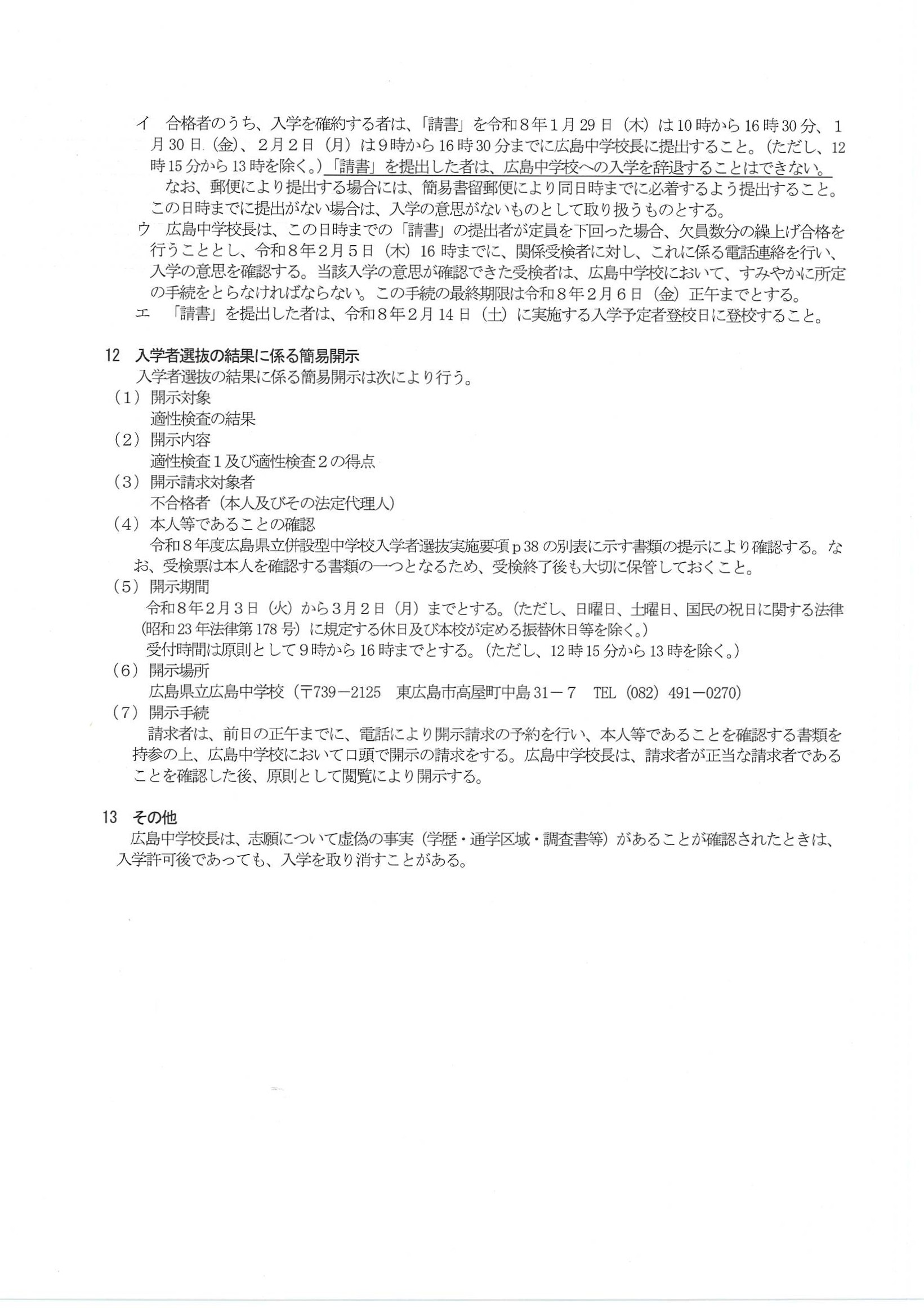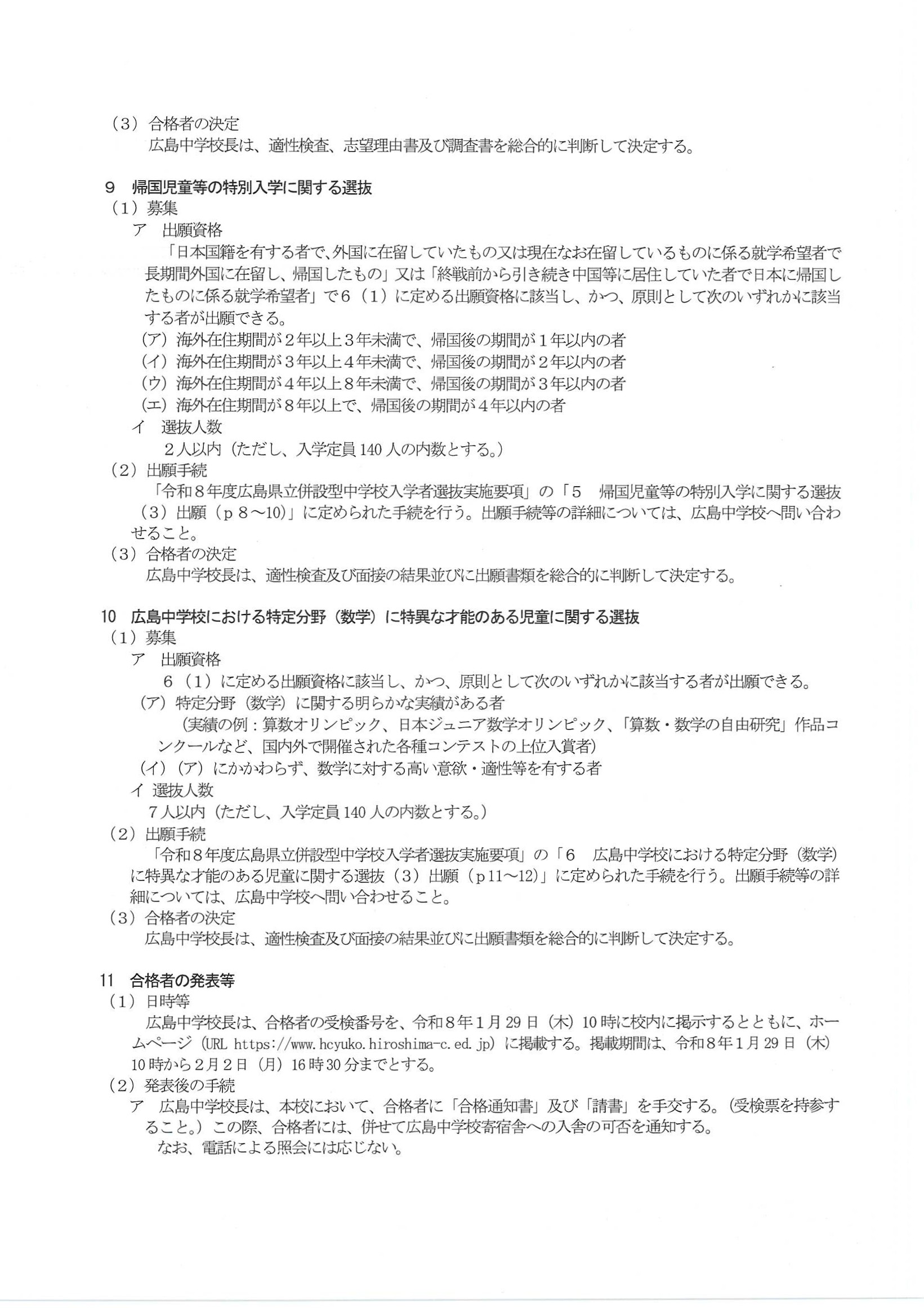 2025年11月13日 2026年 【広島県立広島中学校】入学者選抜実施要項