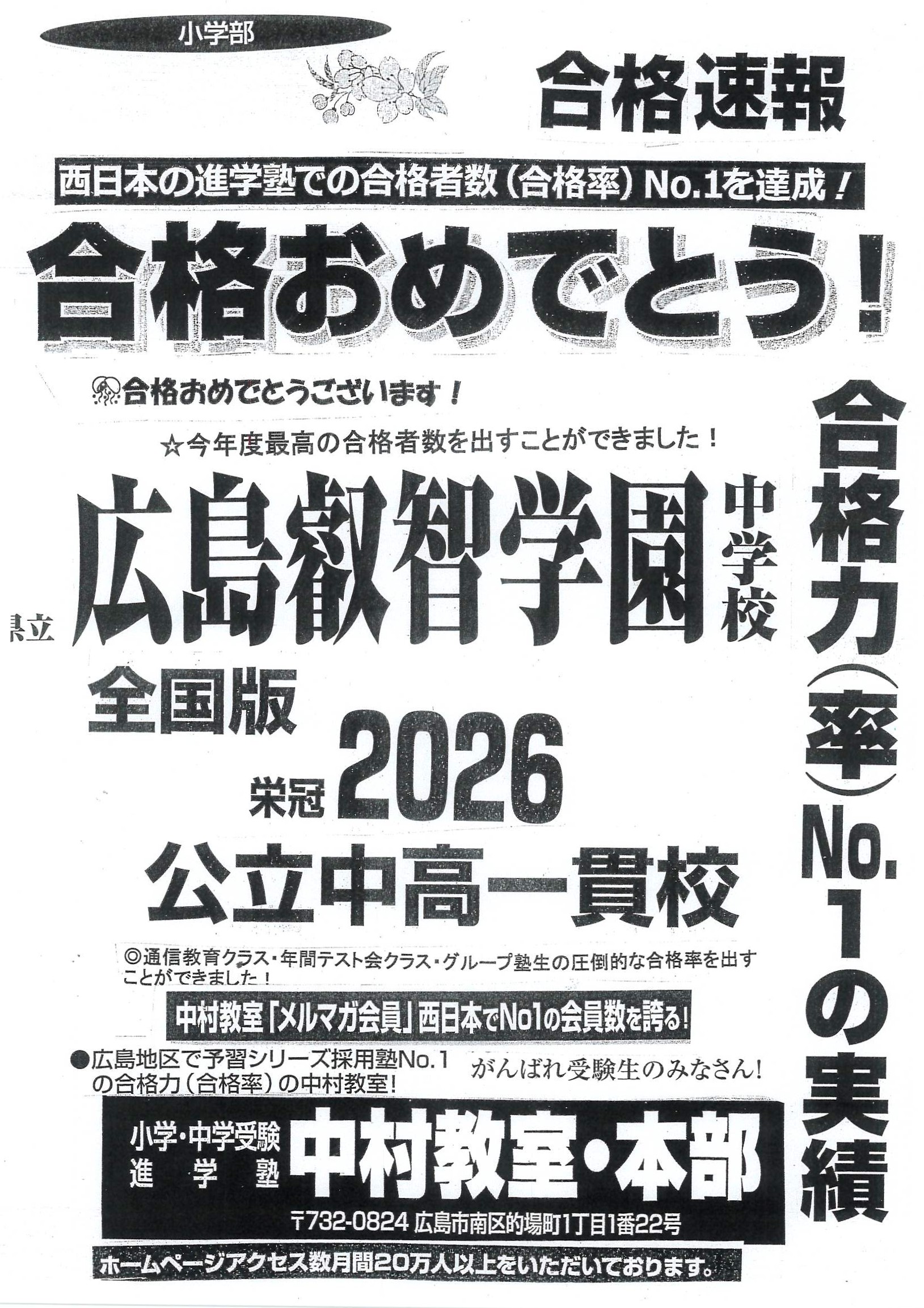 2025年12月03日 ㊗2026年広島叡智学園中(1次)✿45名合格!おめでとう❀