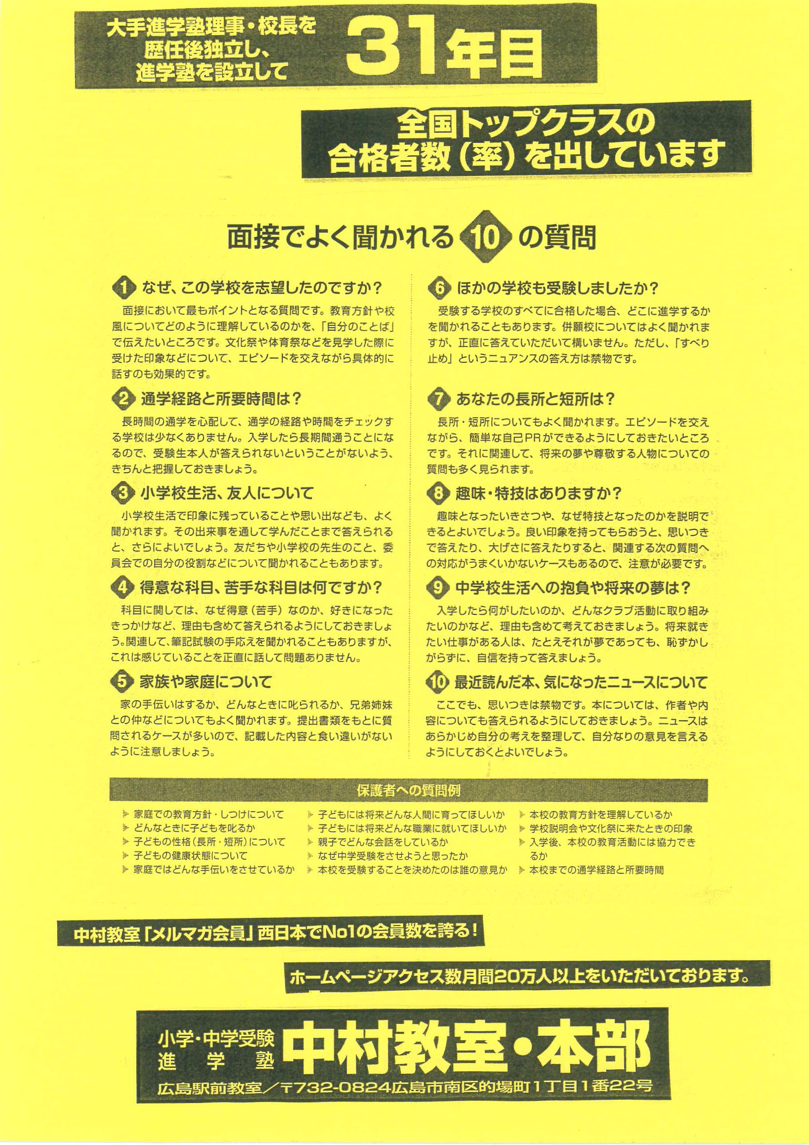 中村教室は全国対応、最高の合格率を今年度も達成。小学・中学受験合格力No1!