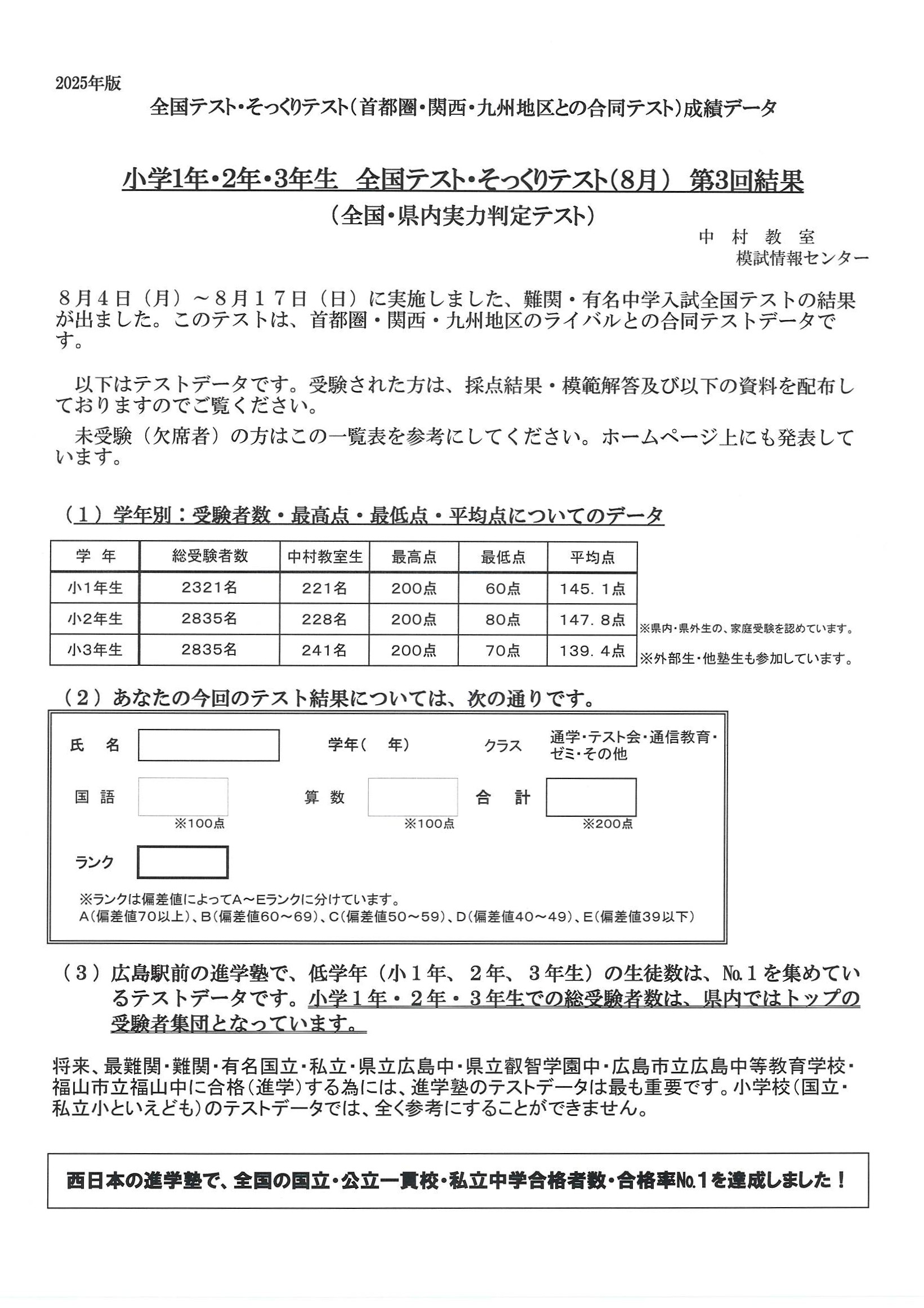 2025年08月18日 【小学部】 第3回全国・そっくりテスト(小1・2・3年)結果