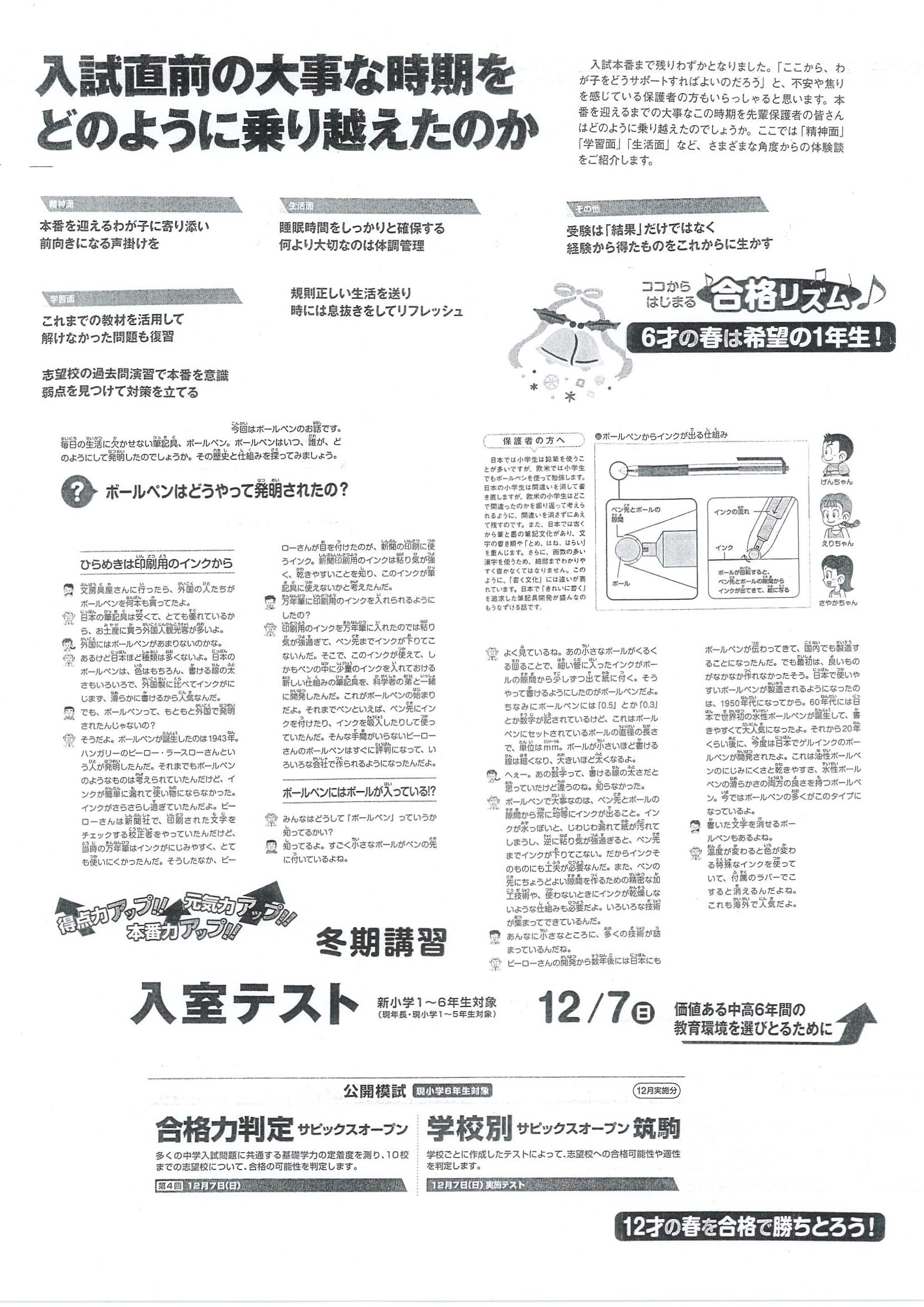2025年11月20日 【幼児・小学部】12月のお知らせ~サピックステストを受けよう