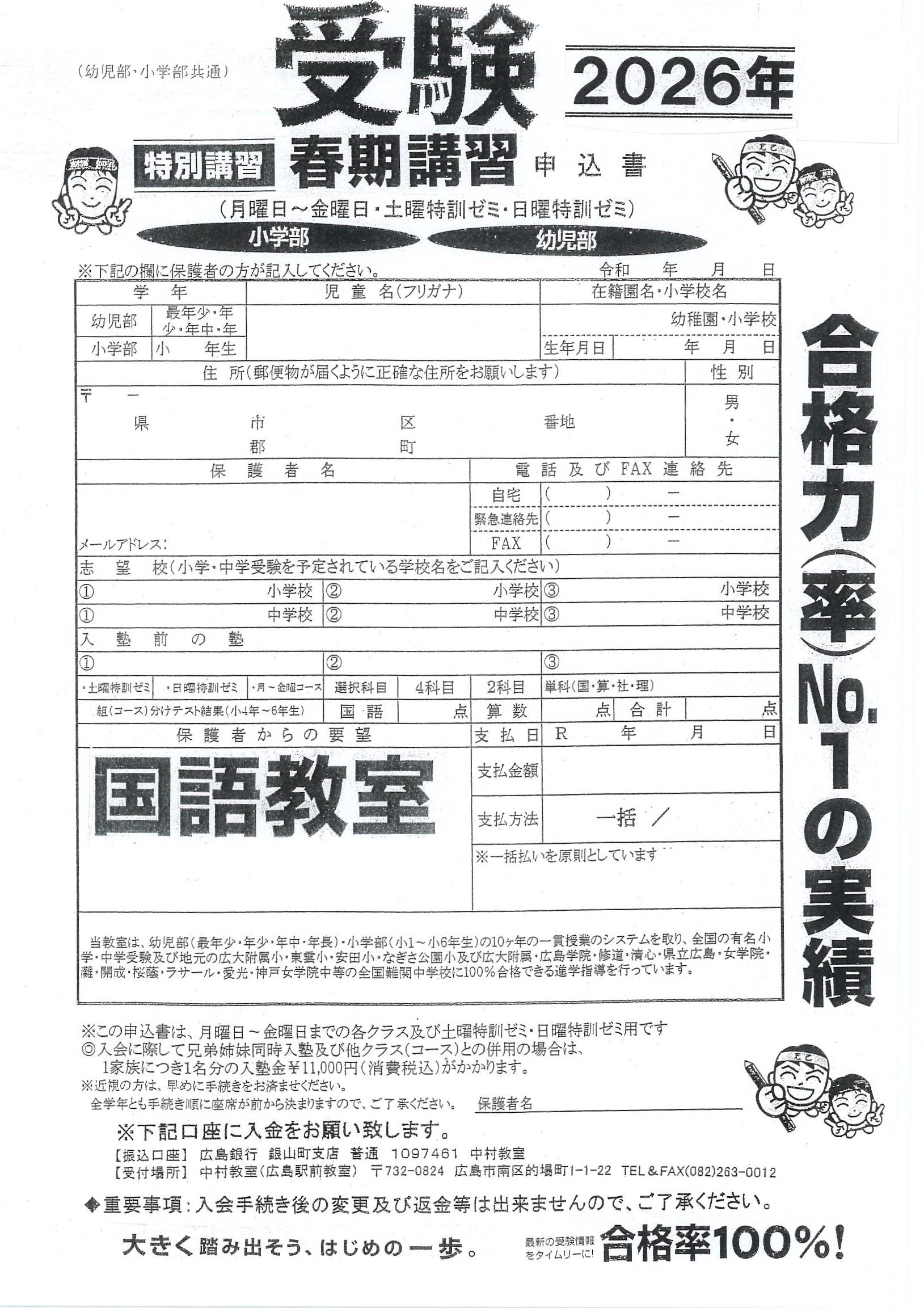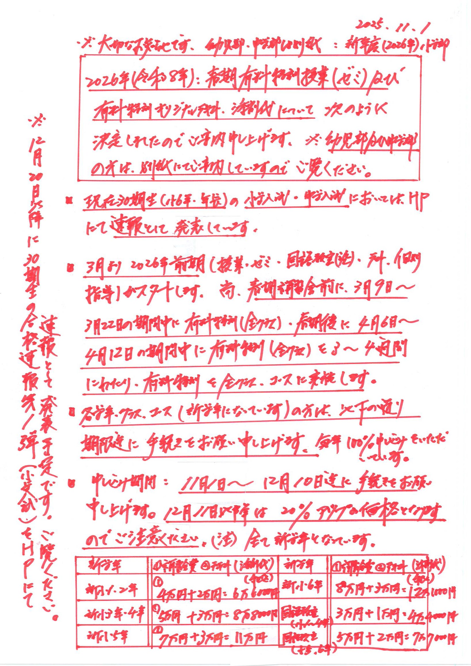 2025年11月01日 2026年 【春期】✐有料特訓・国語教室✐ 申し込み案内