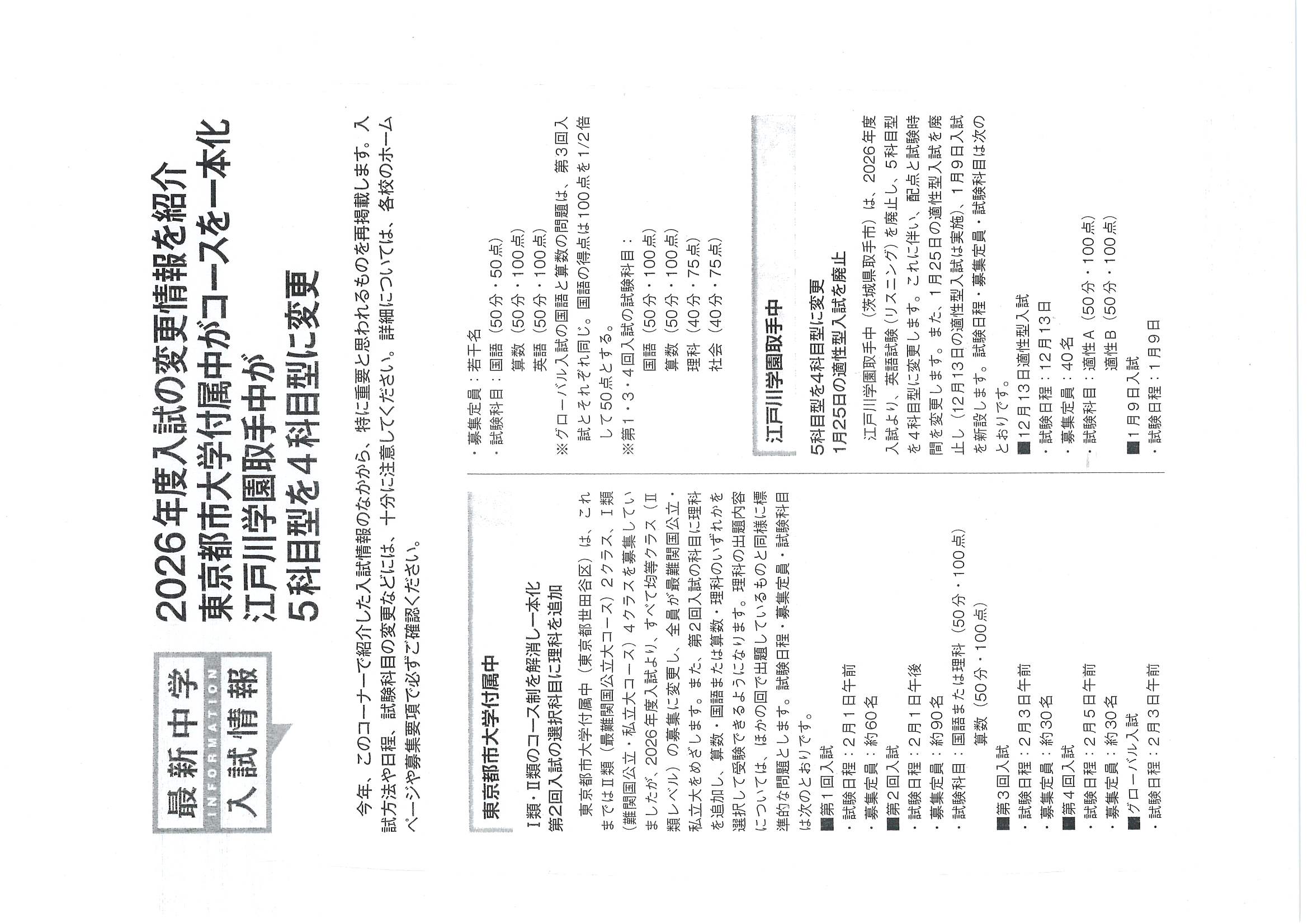 2025年11月19日 2026年 【首都圏地区中学入試】最新入試情報(12月)