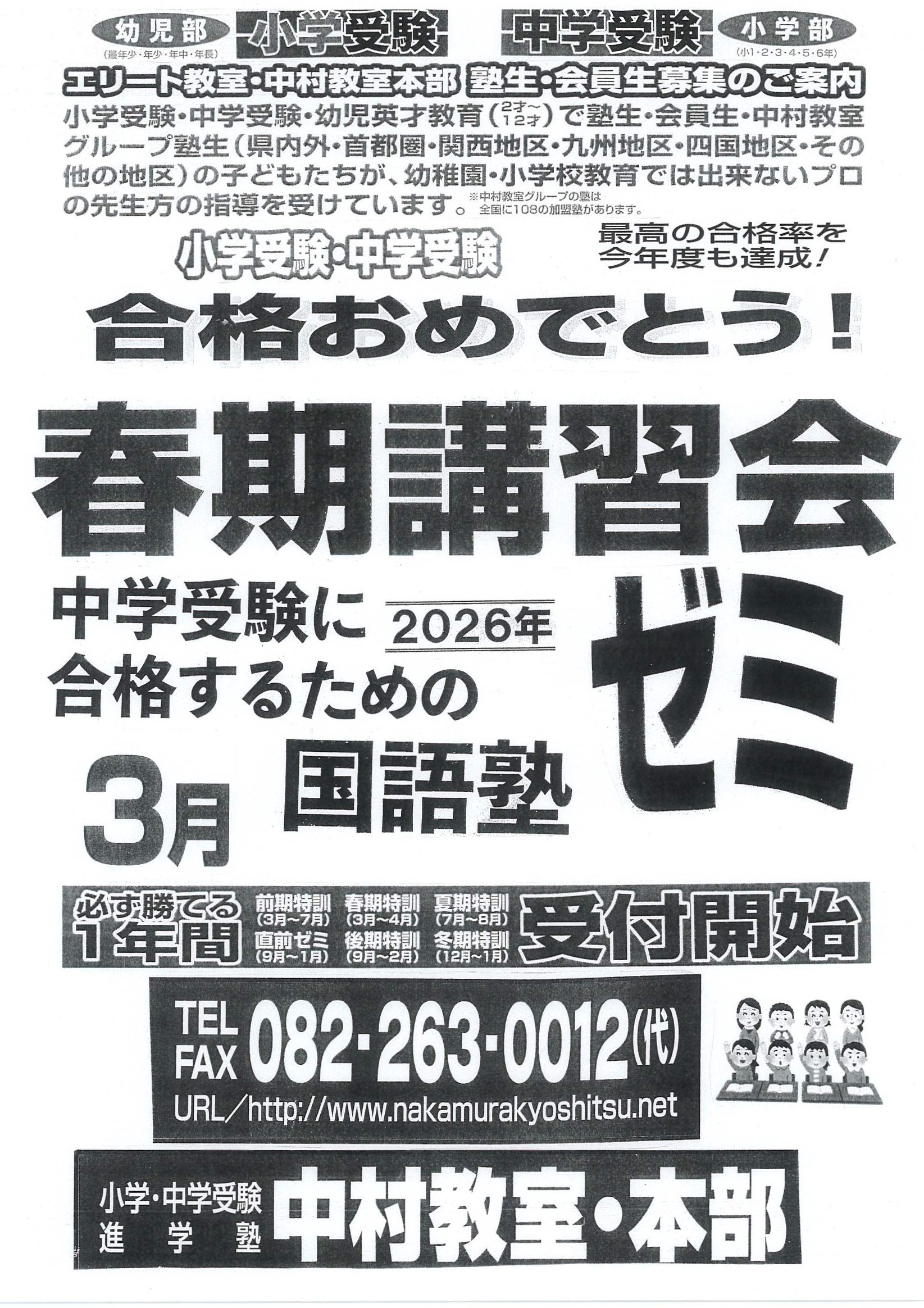 中村教室は全国対応、最高の合格率を今年度も達成。小学・中学受験合格力No1!