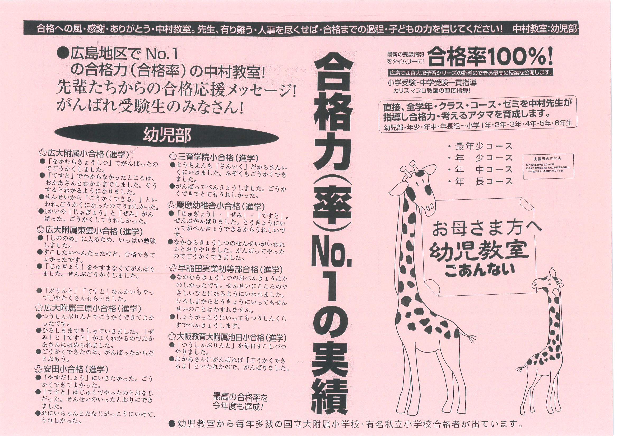 中村教室は全国対応、最高の合格率を今年度も達成。小学・中学受験合格力No1!