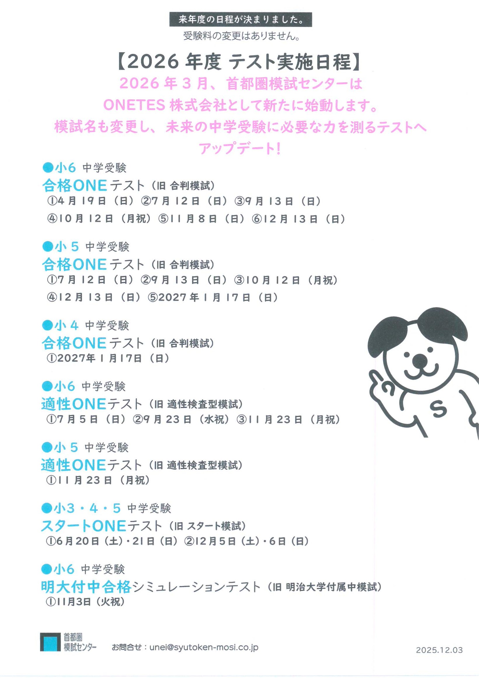2025年12月19日 2026年 『ONETES』(首都圏模試センター名称変更)