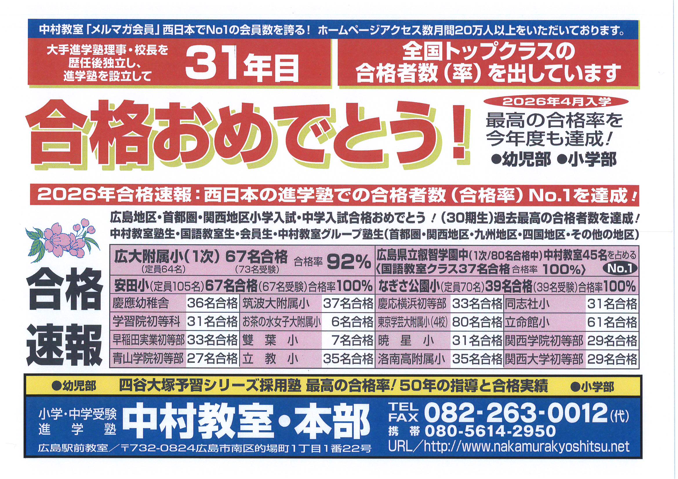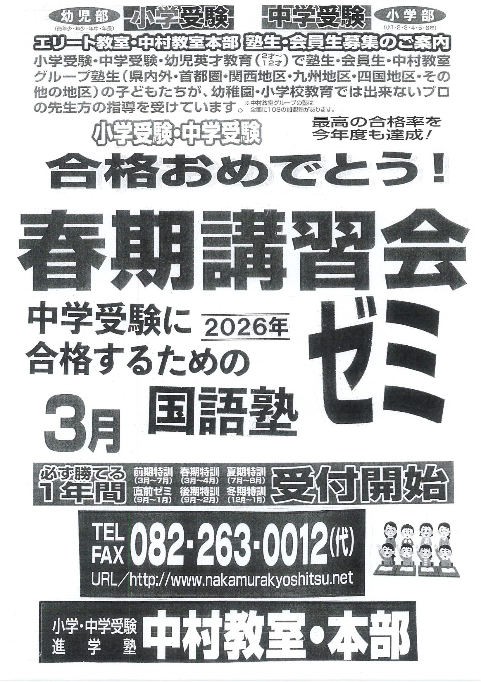 中村教室は全国対応、最高の合格率を今年度も達成。小学・中学受験合格力No1!