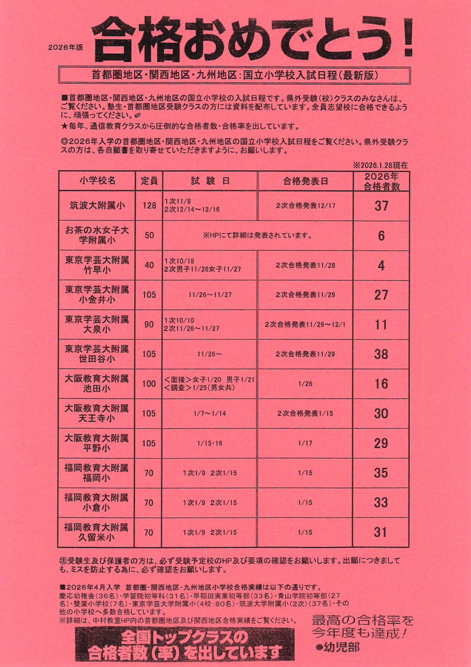 2026年01月28日 ㊗2026年 【首都圏・関西・九州地区】国立小学校合格者数③