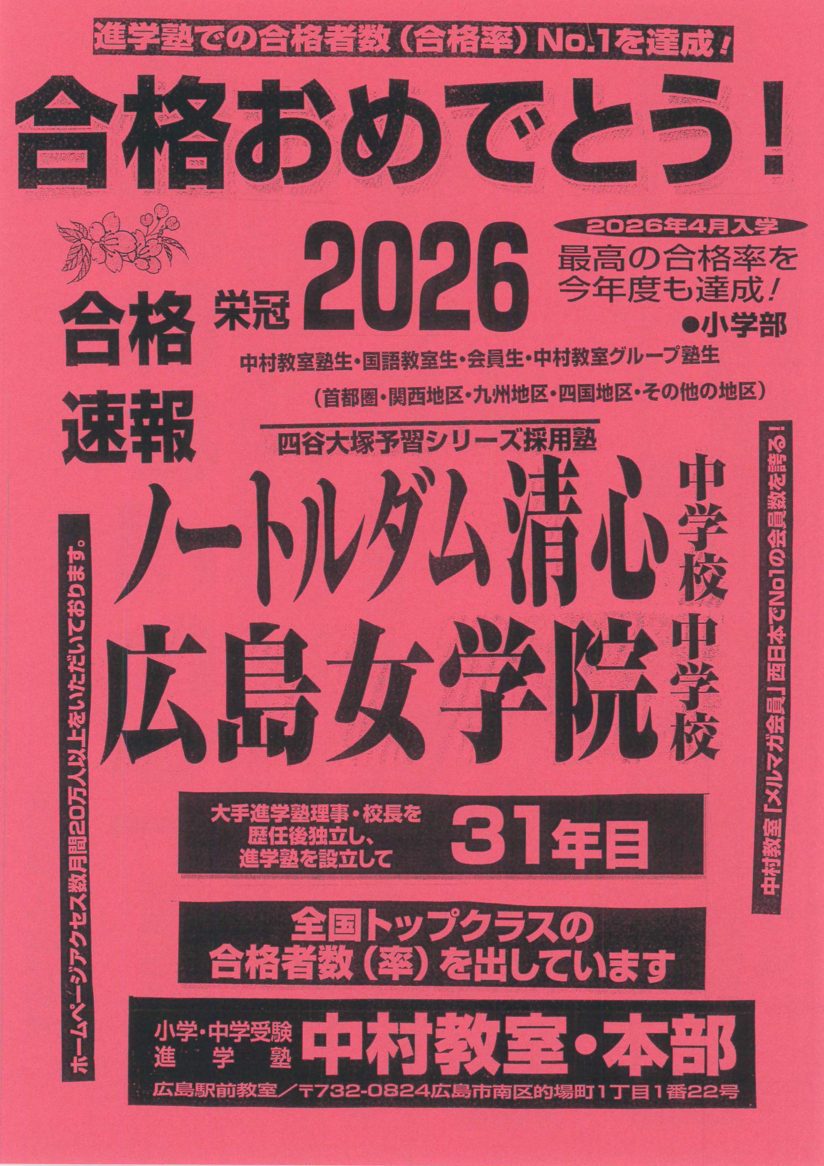 中村教室は全国対応、最高の合格率を今年度も達成。小学・中学受験合格力No1!