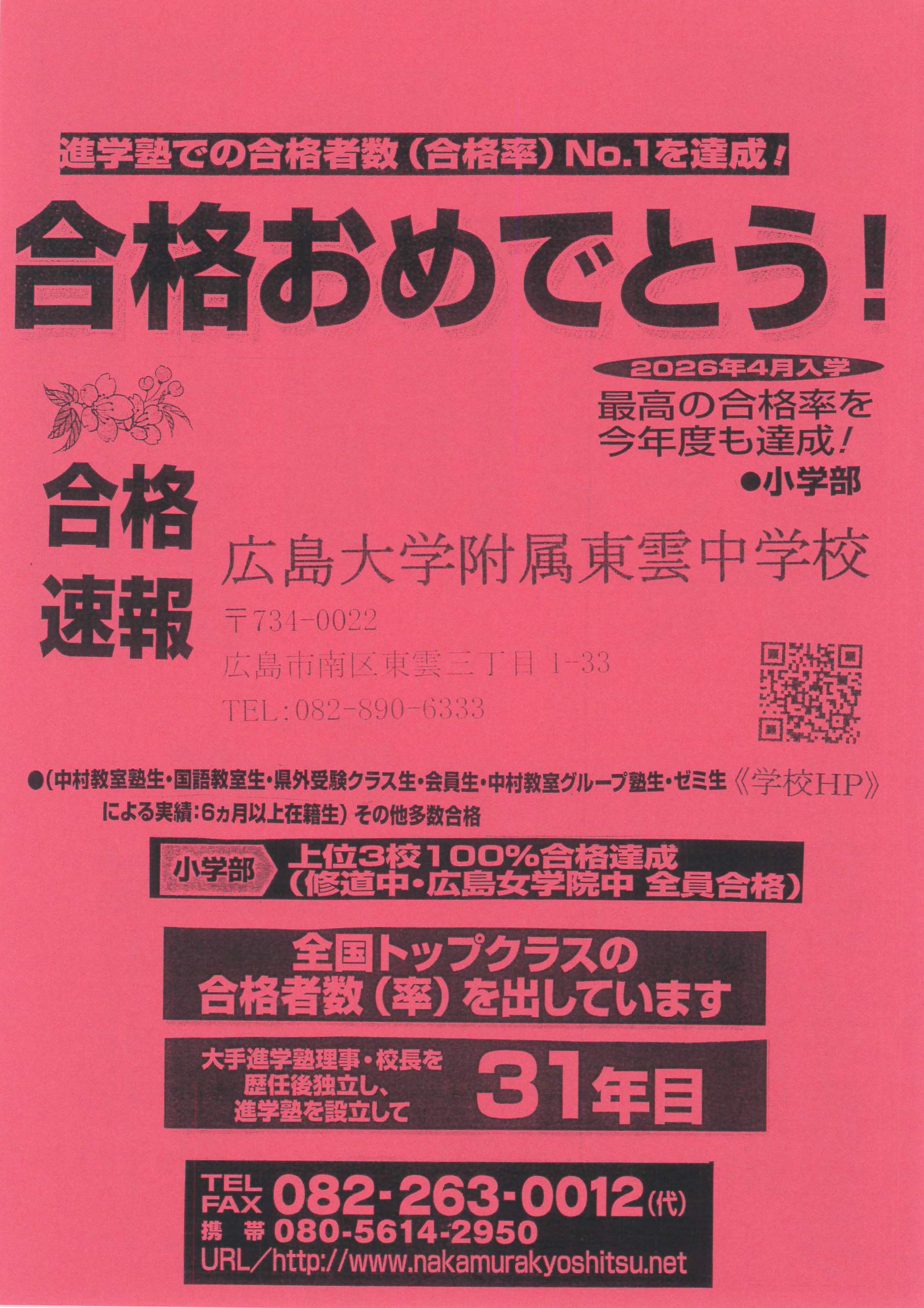 2026年01月30日 ㊗2026年 広大附属東雲中学校25名 合格おめでとう!