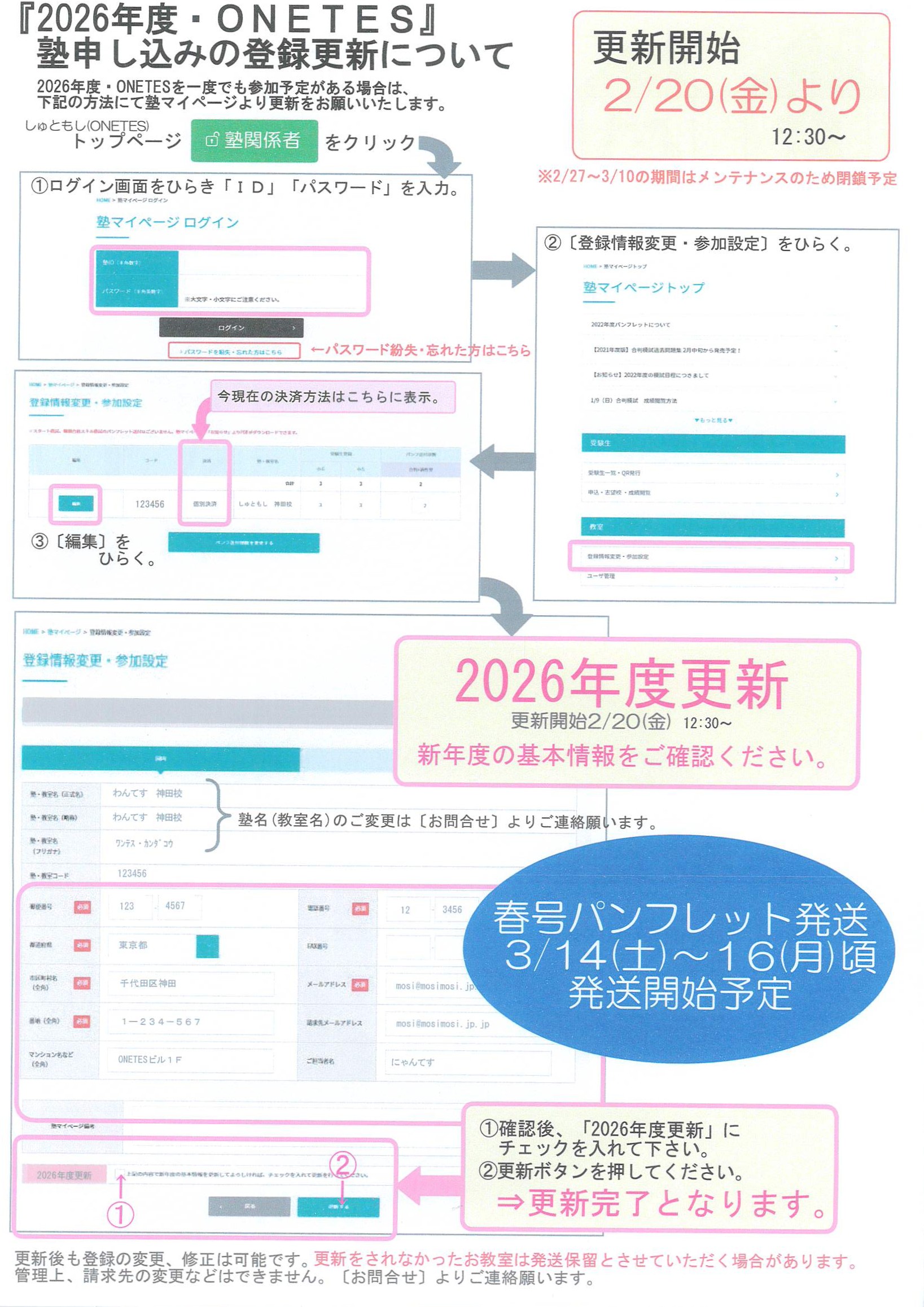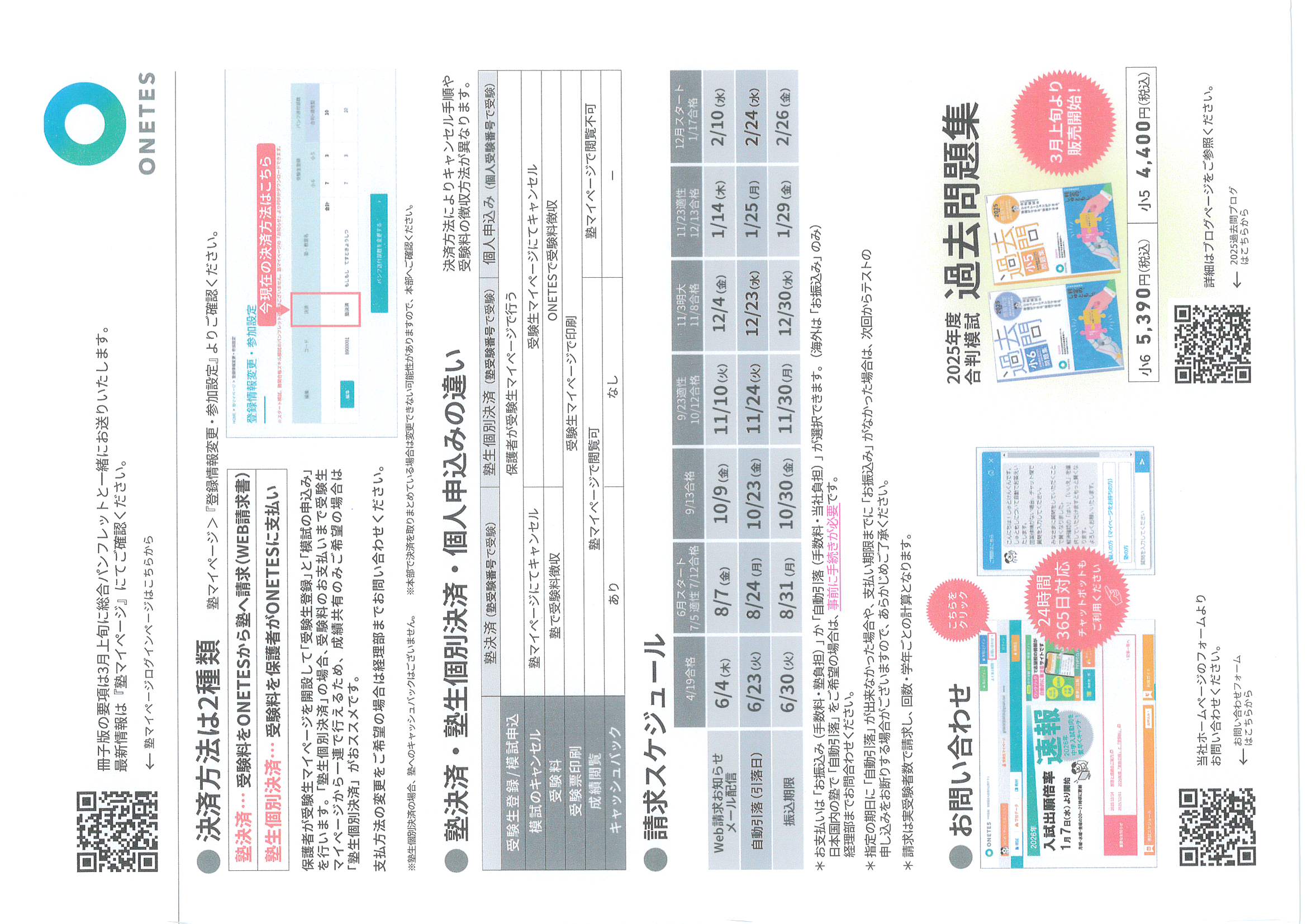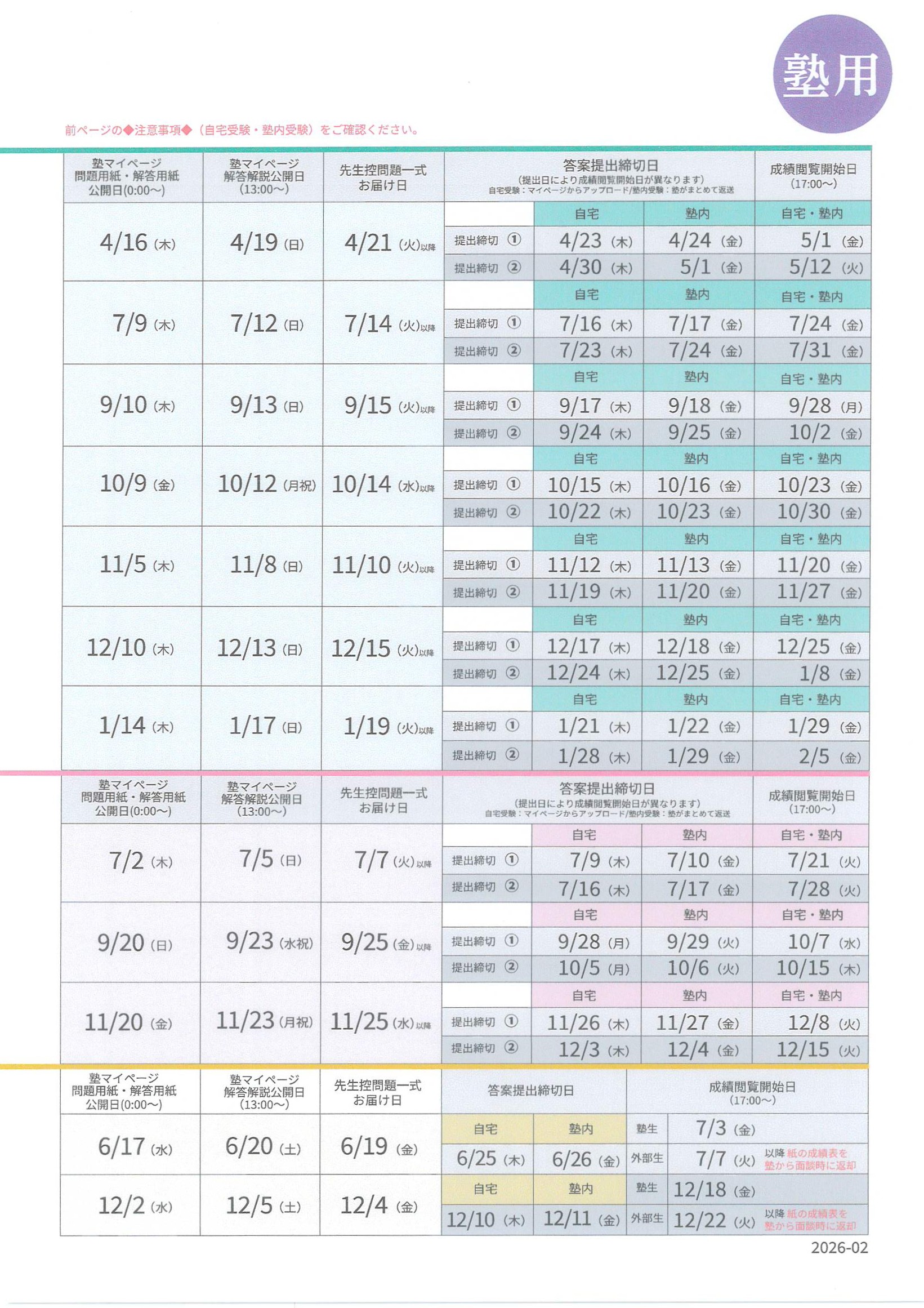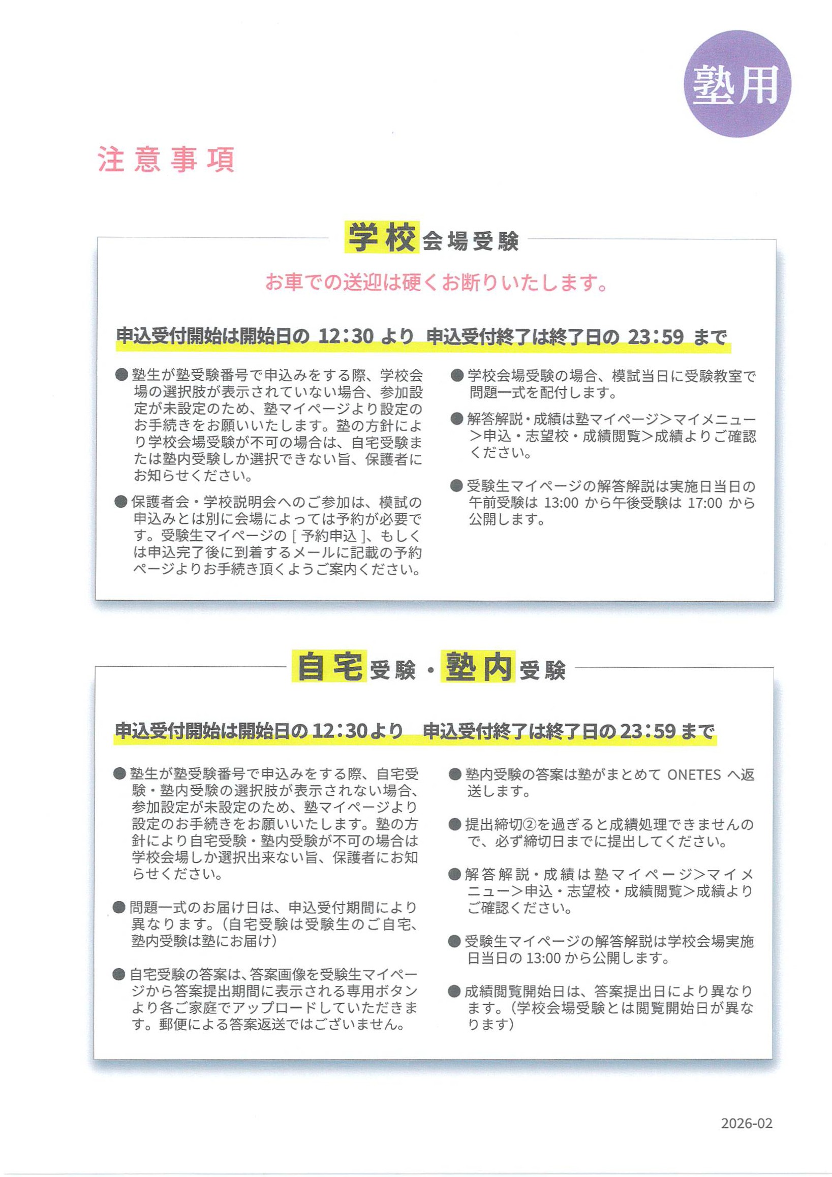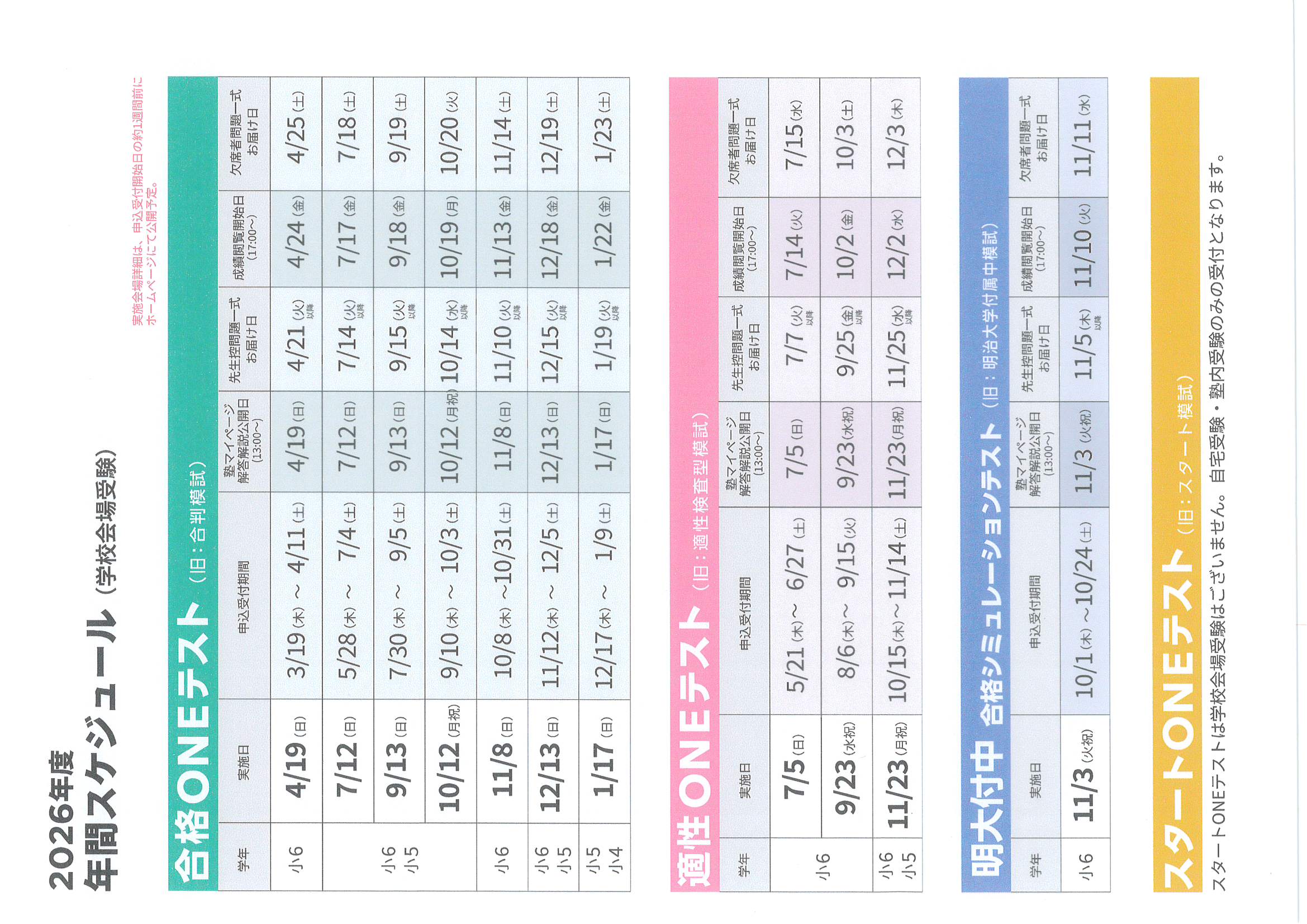 2026年02月04日 2026年【ONETES】(旧首都圏模試)スケジュール表