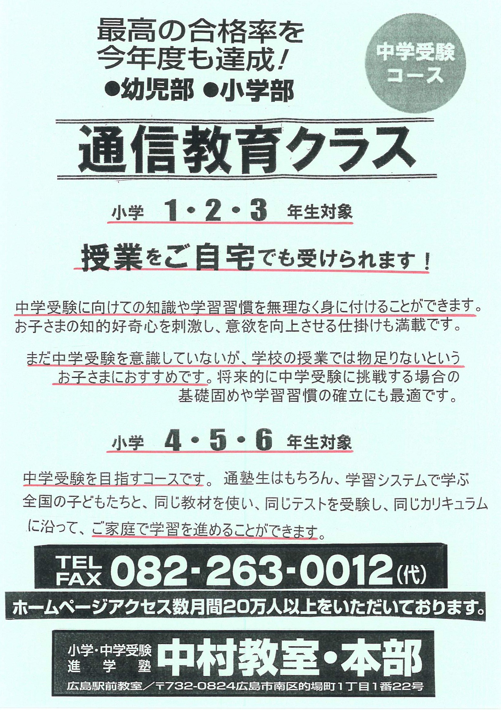 中村教室は全国対応、最高の合格率を今年度も達成。小学・中学受験合格力No1!